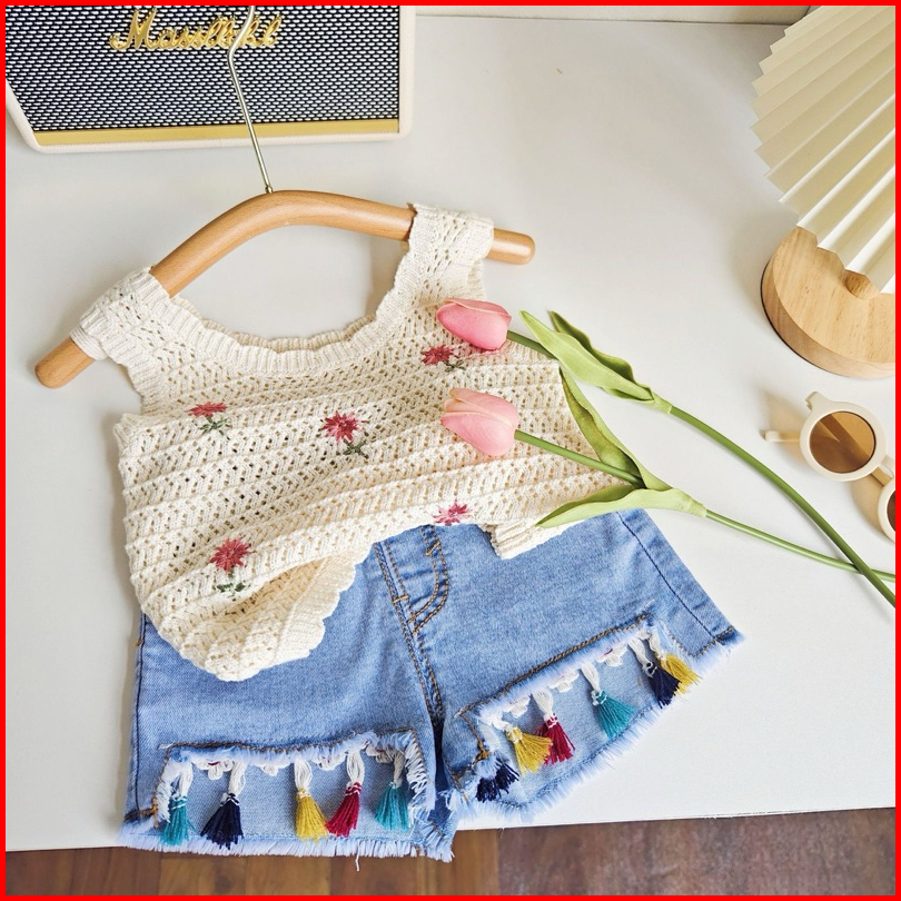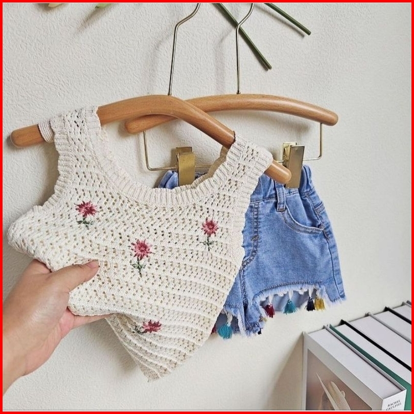Littleflamingo Setelan Baju Celana Jeans Anak Perempuan Lucu Ready Stock