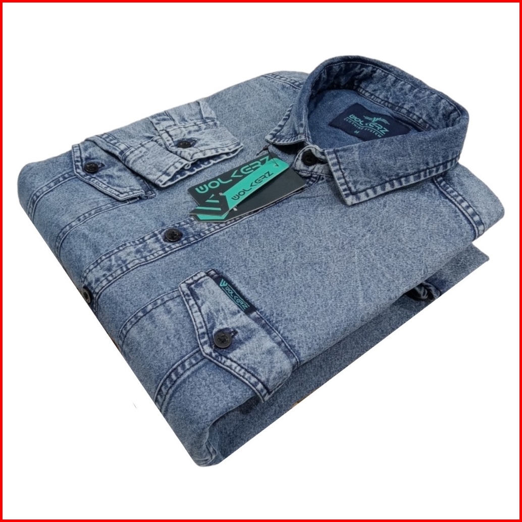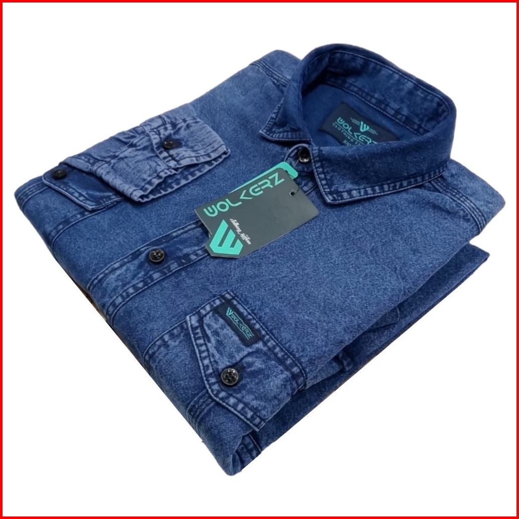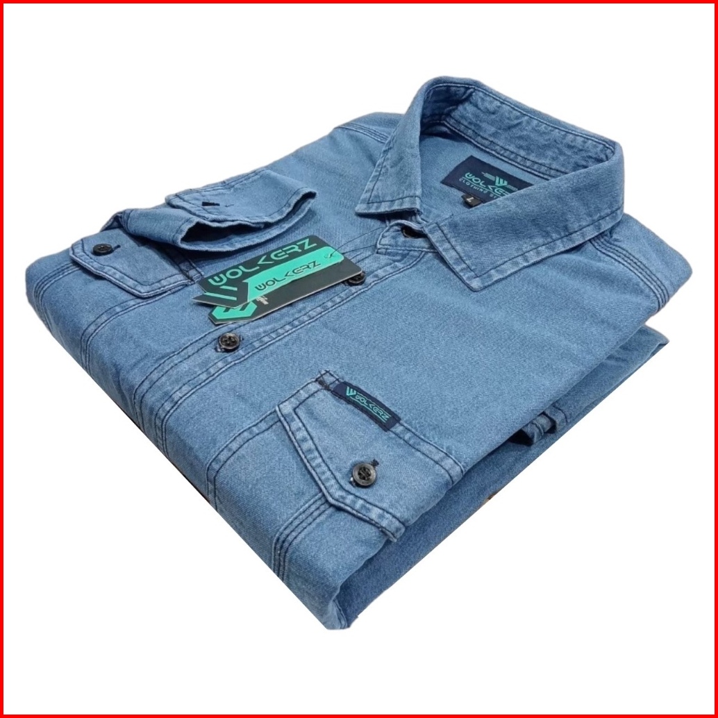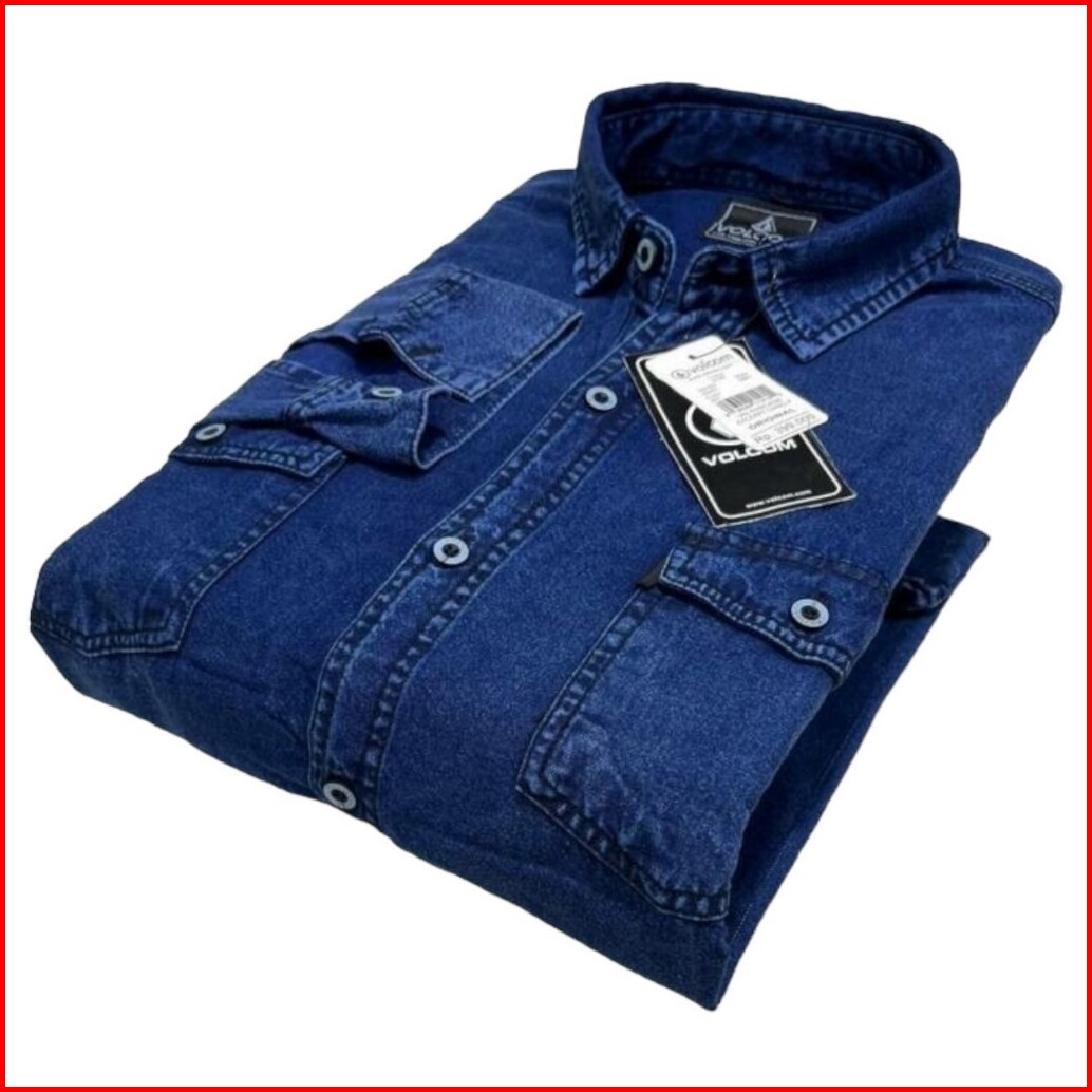 Kemeja Jeans Jumbo Pria Lengan Panjang Big Size Xxl Xxxl Xxxxl Hem Denim Casual Fashion Men Quality Premium