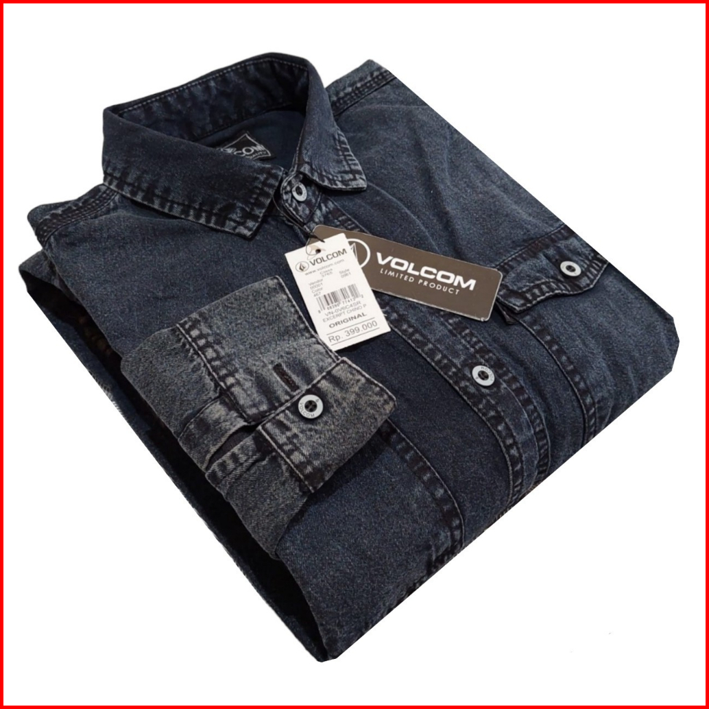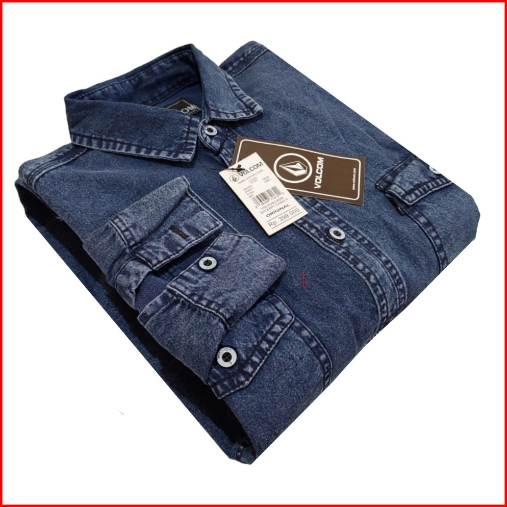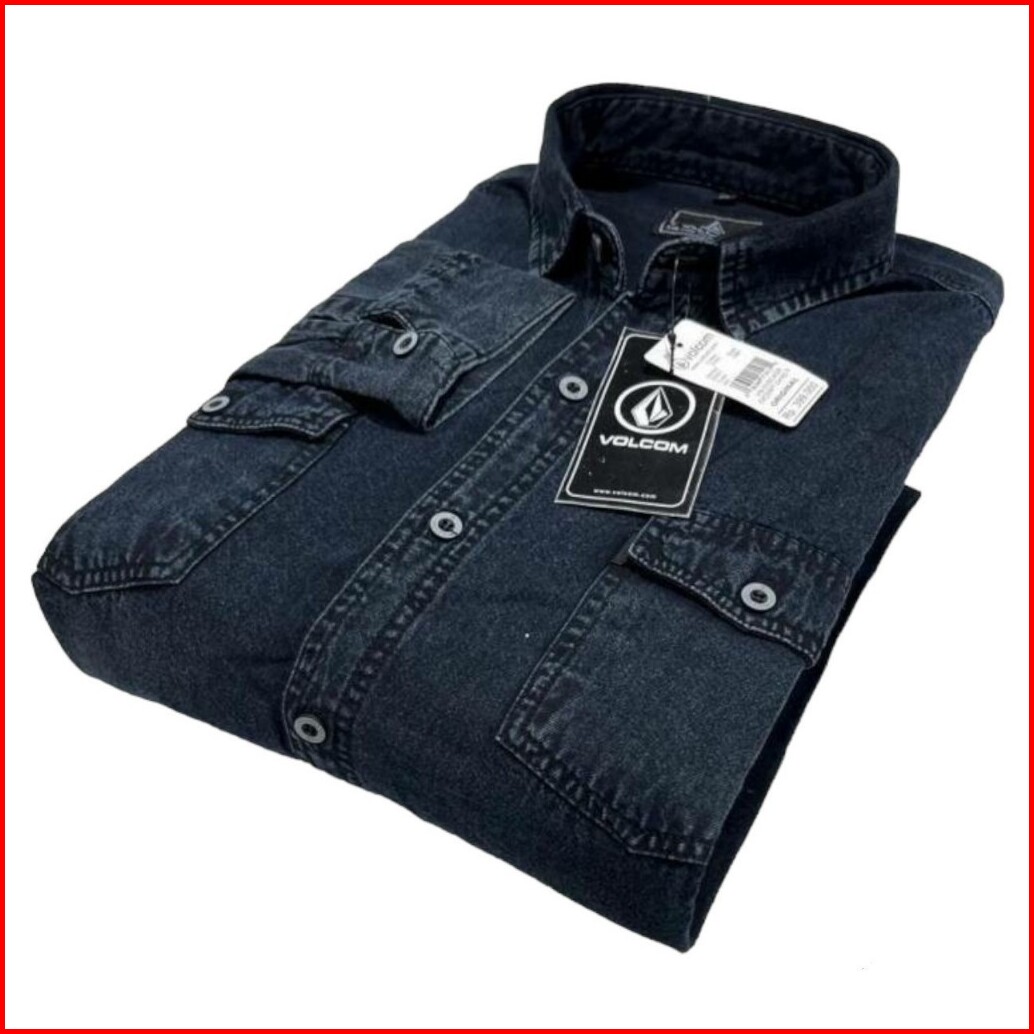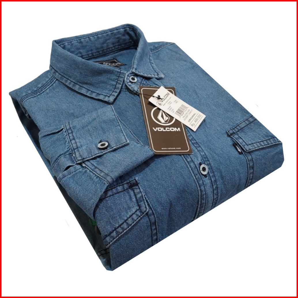 Kemeja Jeans Jumbo Pria Lengan Panjang Big Size Xxl Xxxl Xxxxl Hem Denim Casual Fashion Men Quality Premium