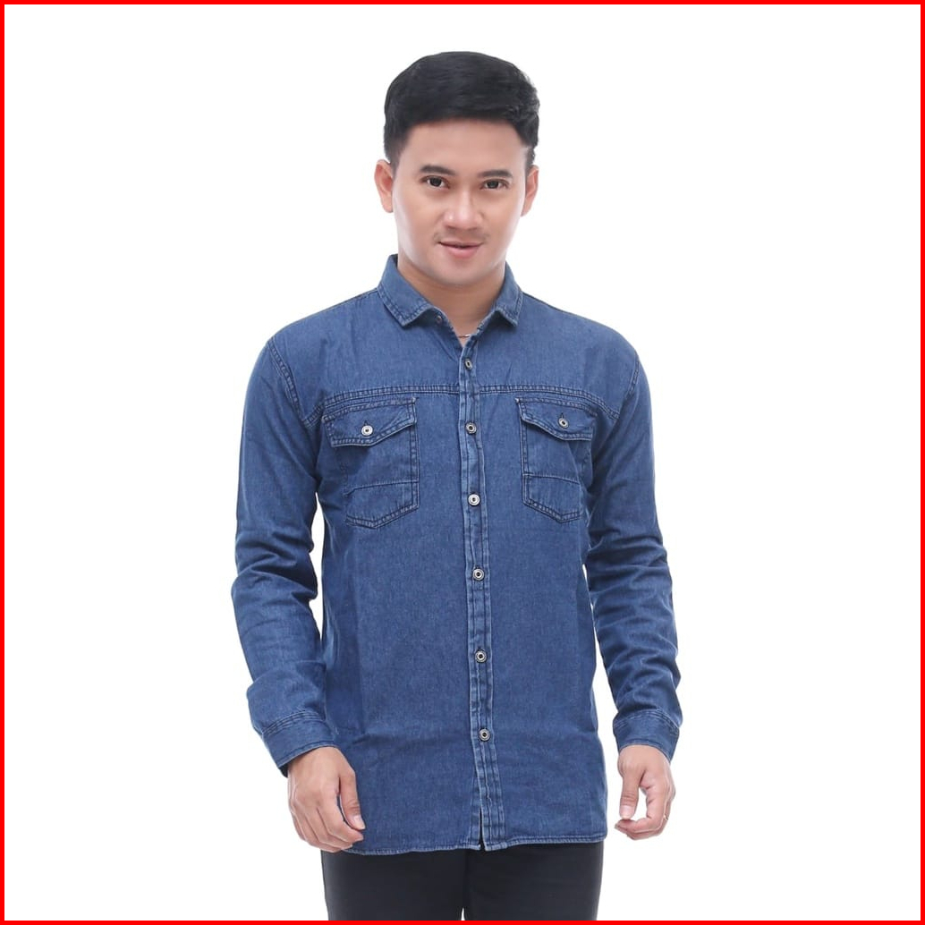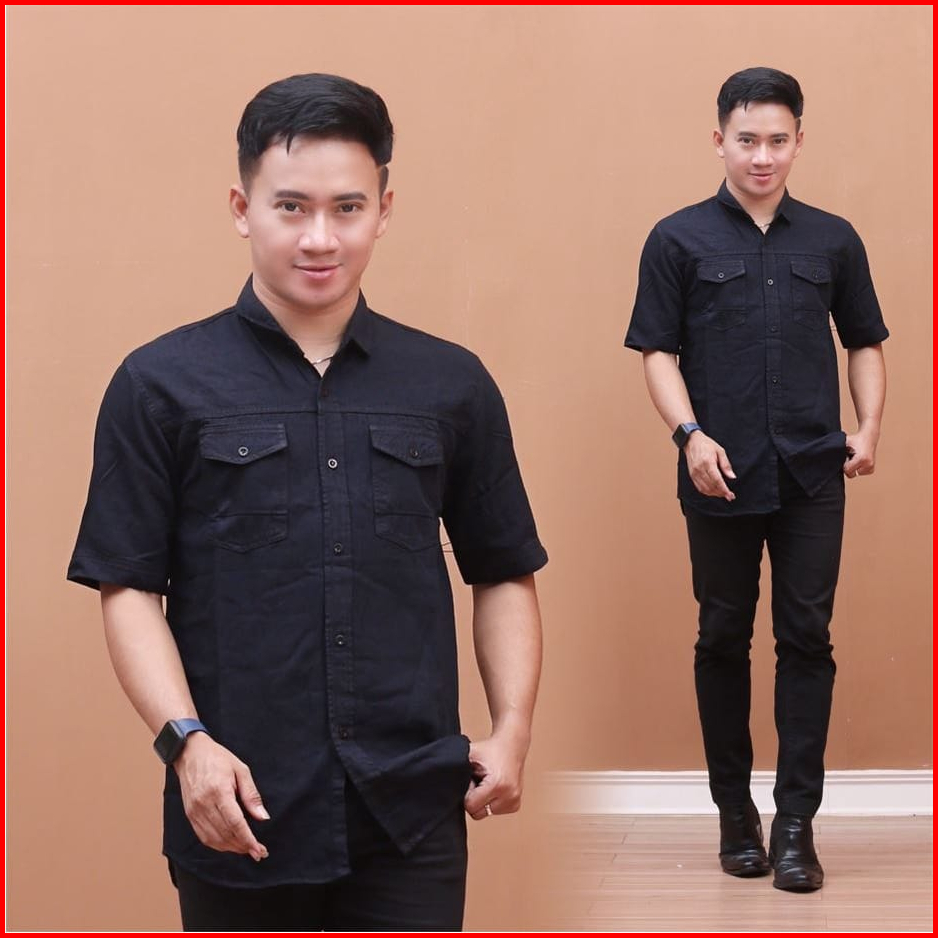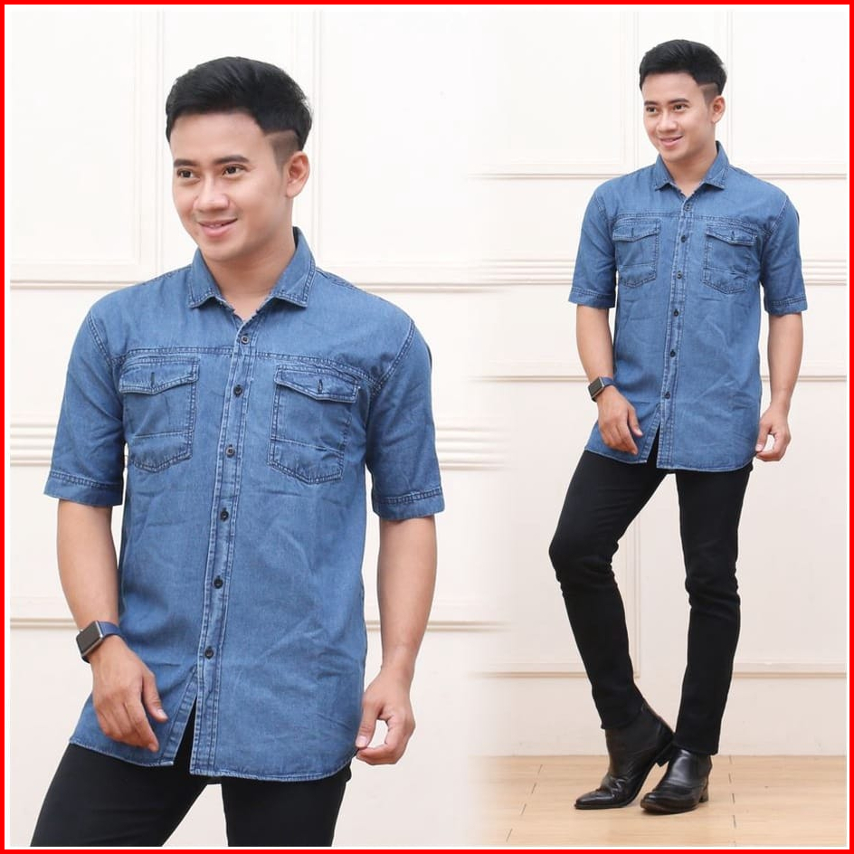 Hem Jeans Pria Lengan Pendek Premium Kemeja Pria Jeans Lengan Panjang Hem Pria Jeans Lengan Pendek