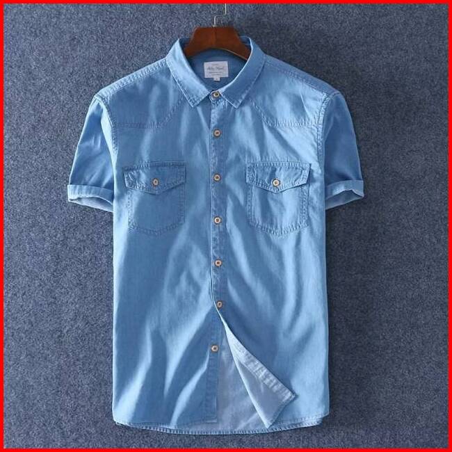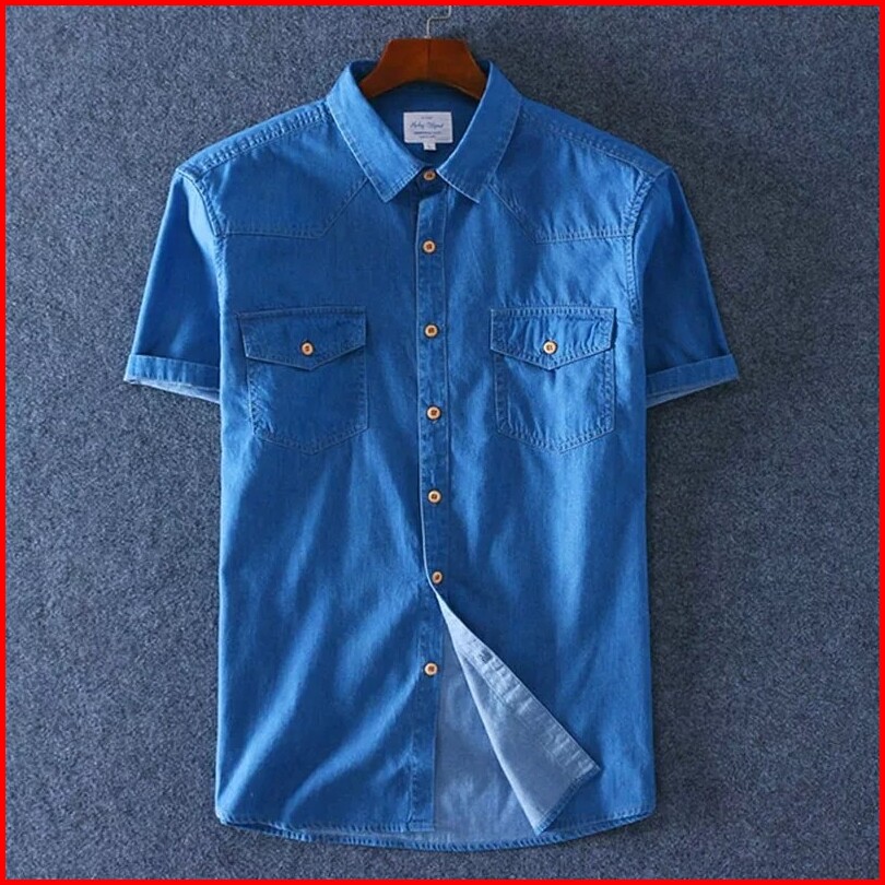 Tototashop.kemeja Jeans Pria After M-l-xl-xxl Bahan Jeans Wash Original Premium.real Pict