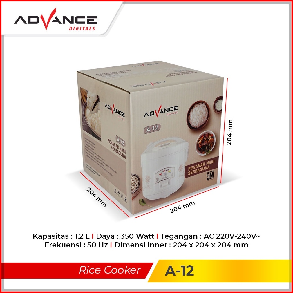 Advance Rice Cooker Kecil Mini 1.2 Liter Penanak Nasi Serbaguna 3in1 A12 Garansi Resmi 1 Tahun