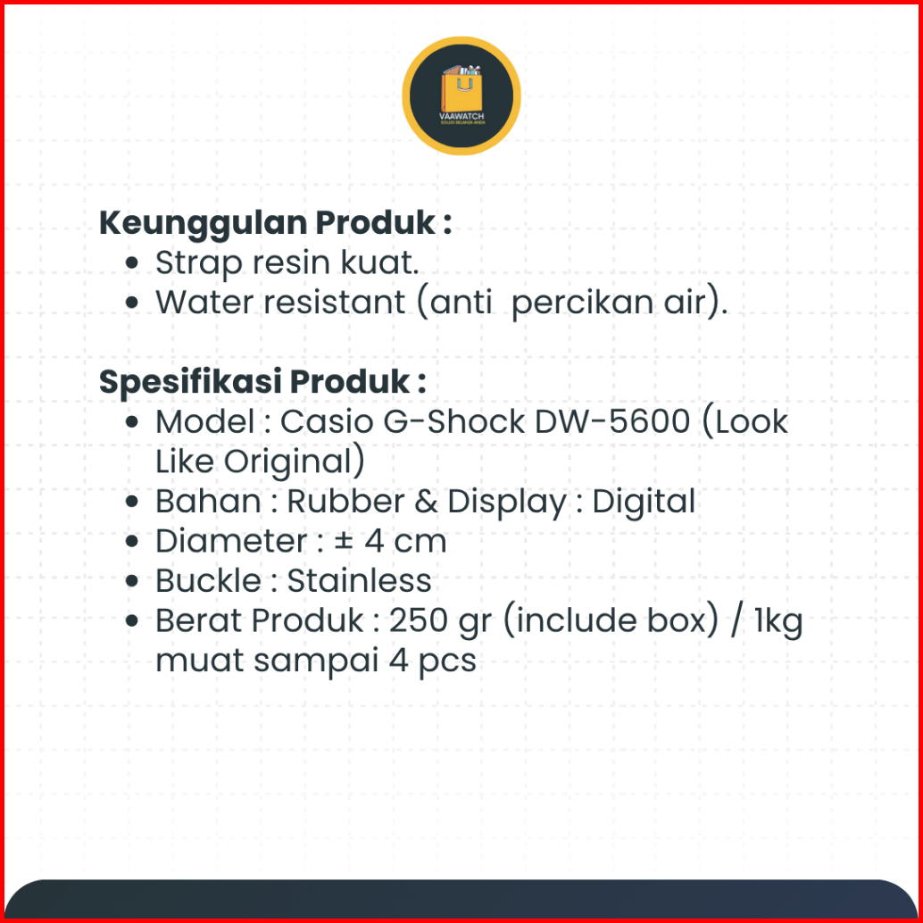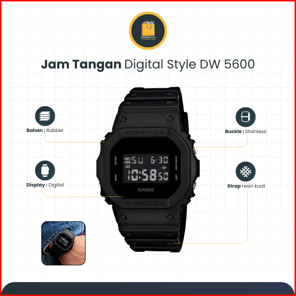 Jam Tangan Pria Digital Sporty Dw 5600 Black Free Box Baterai