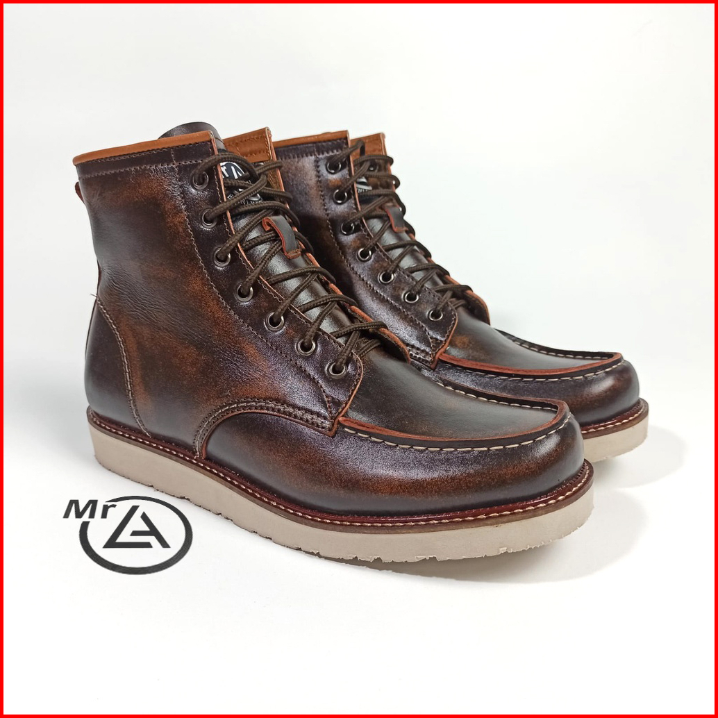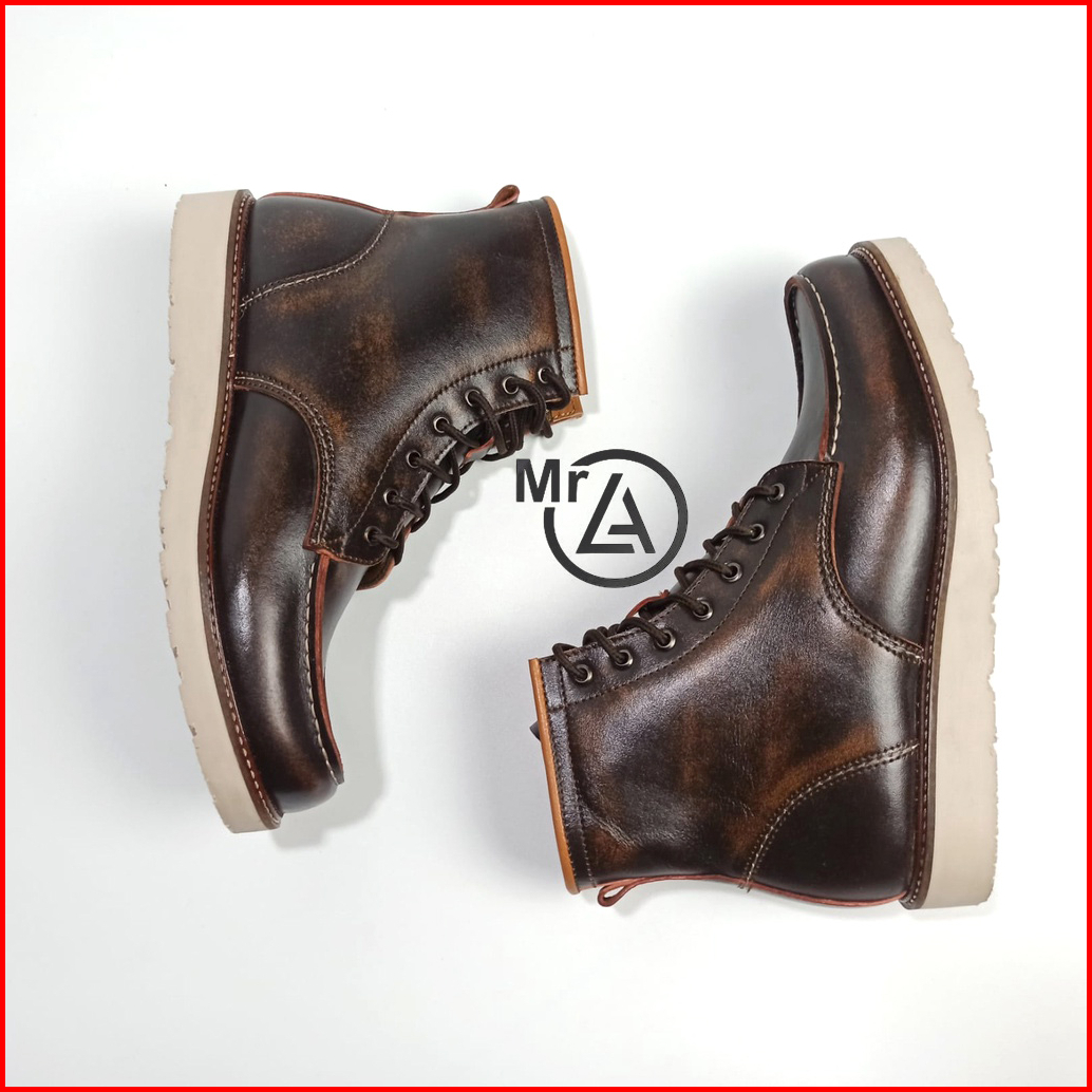 Mr.la Sepatu Boots Pria Casual Kulit Sepatu Cowok Keren Warna Hitam Coklat Tan Ukuran Jumbo 38-46