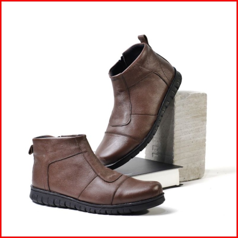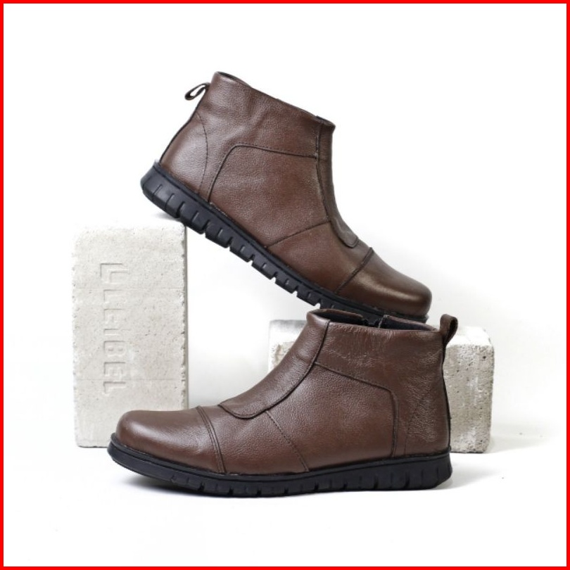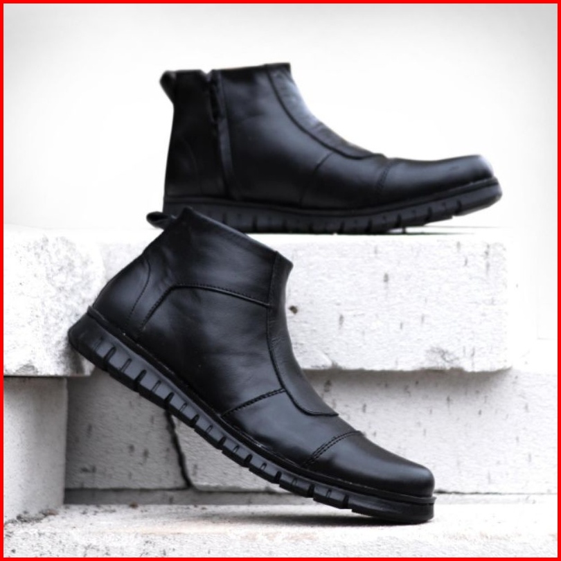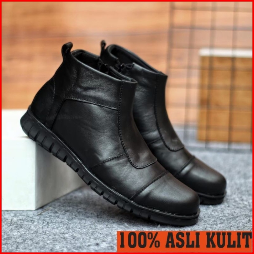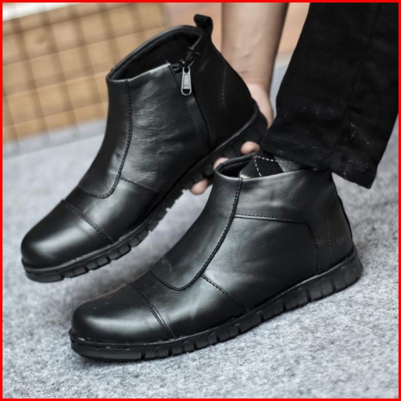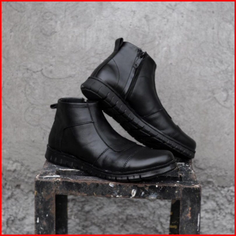 Wolf X Warka Sepatu Pentopel Tinggi Boot Sleting Kulit Asli Original Premium Formal Pria Cowok Kerja Kantor Dinas1