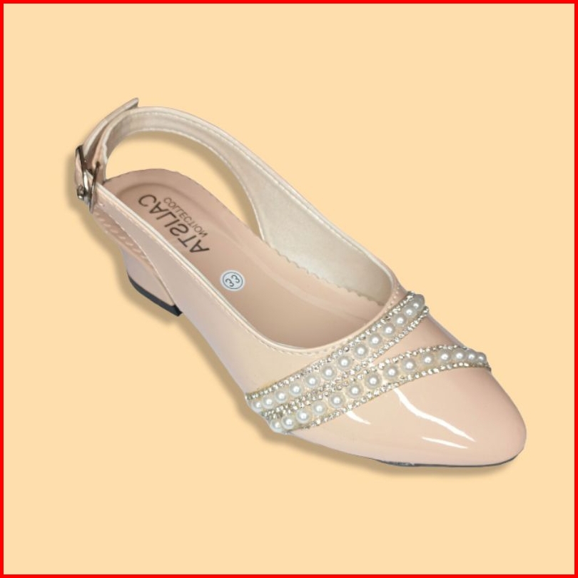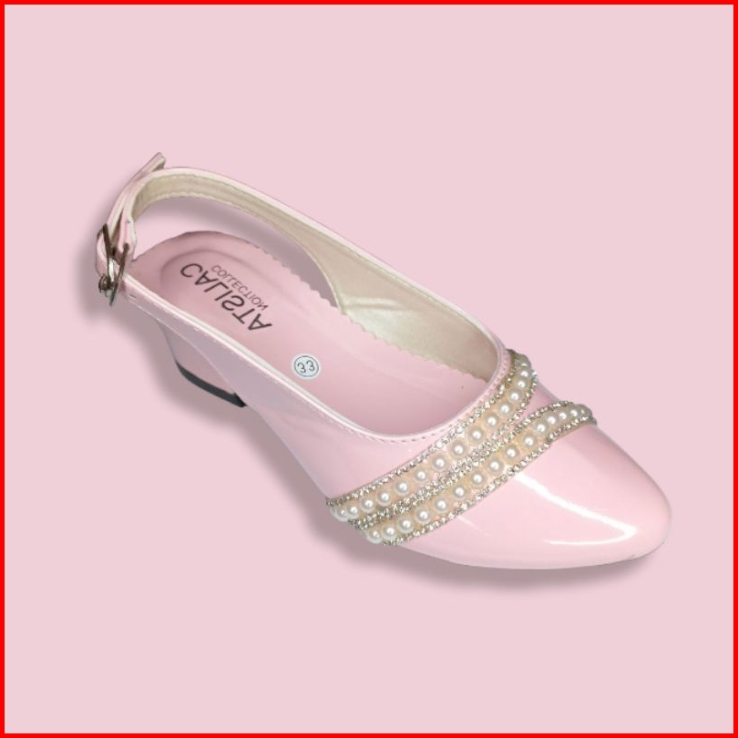 Aruna Sandal Anak Sepatu Pesta Anak Perempuan - Variasi Mutiara Hak Tahu 3cm Nd04