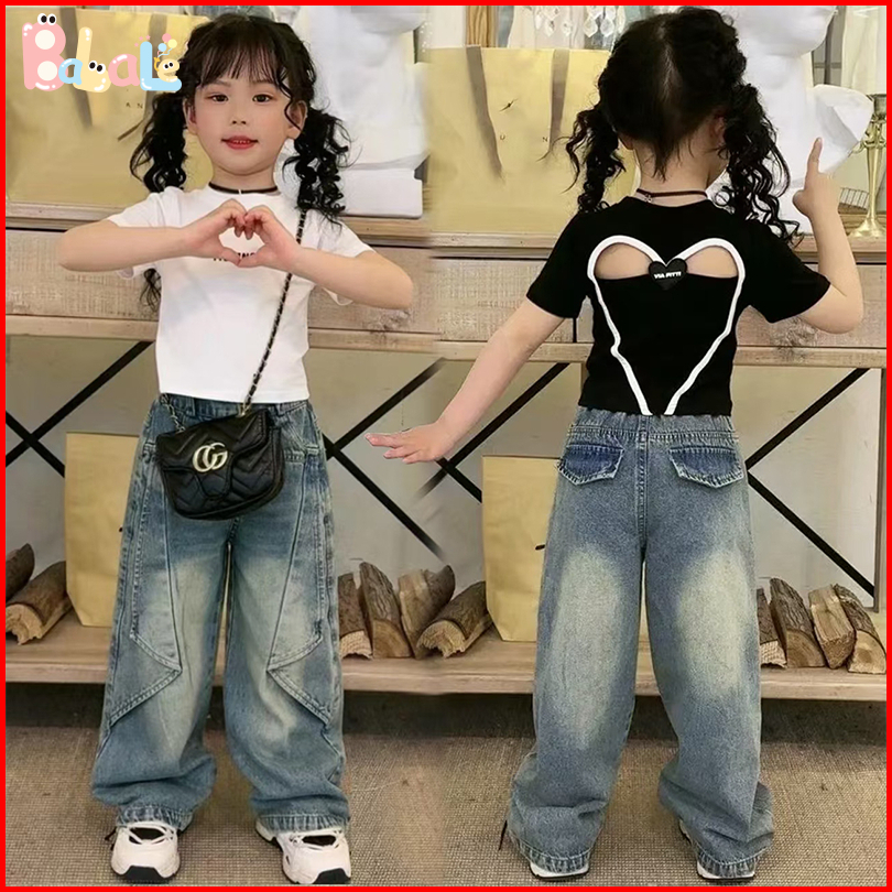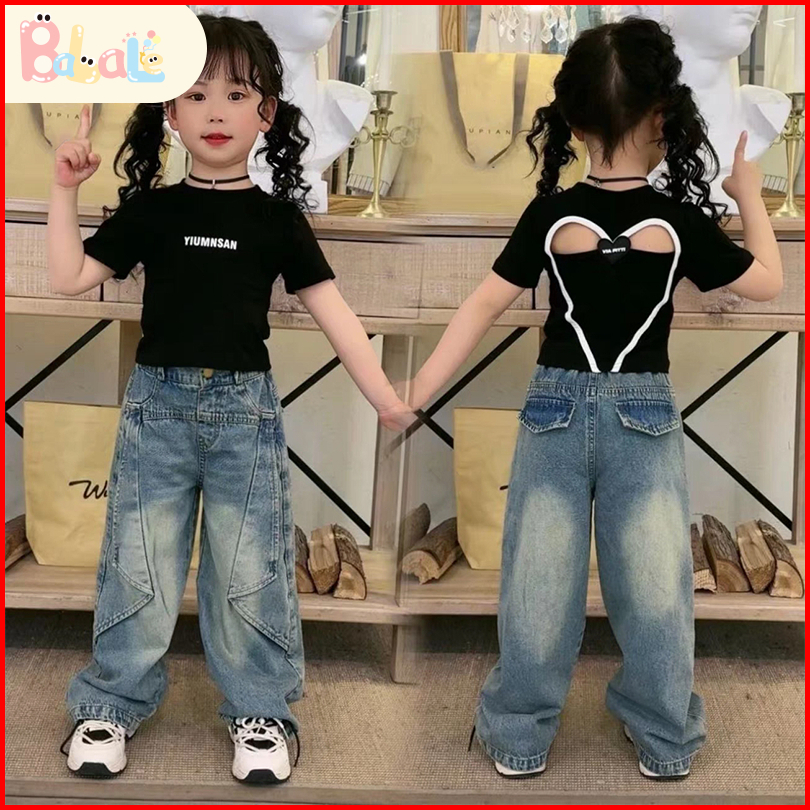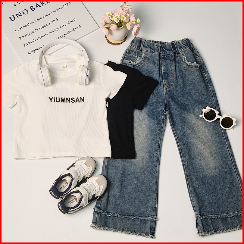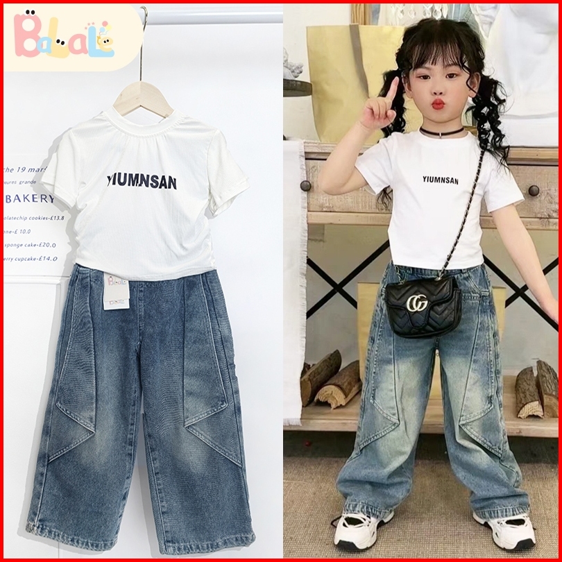 Fashion Setelan Anak Perempuan Terbaru 2025 Jeans Girls Denim Set Baju Sehari-hari Casual Cewek