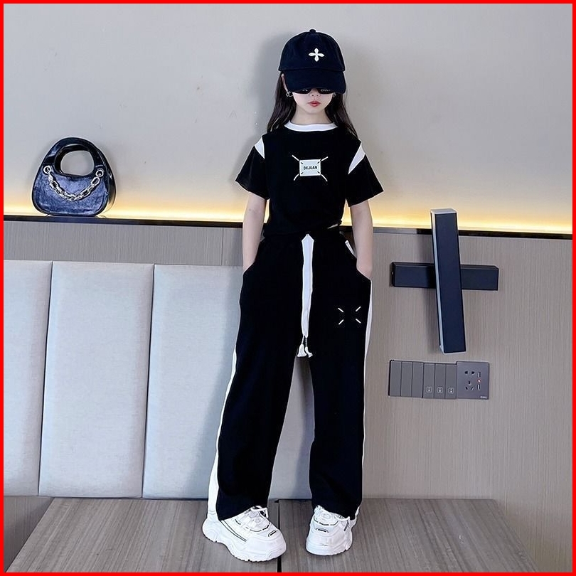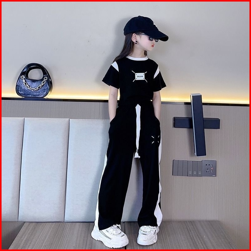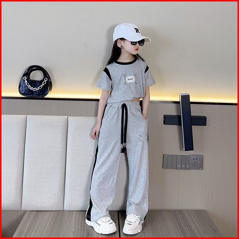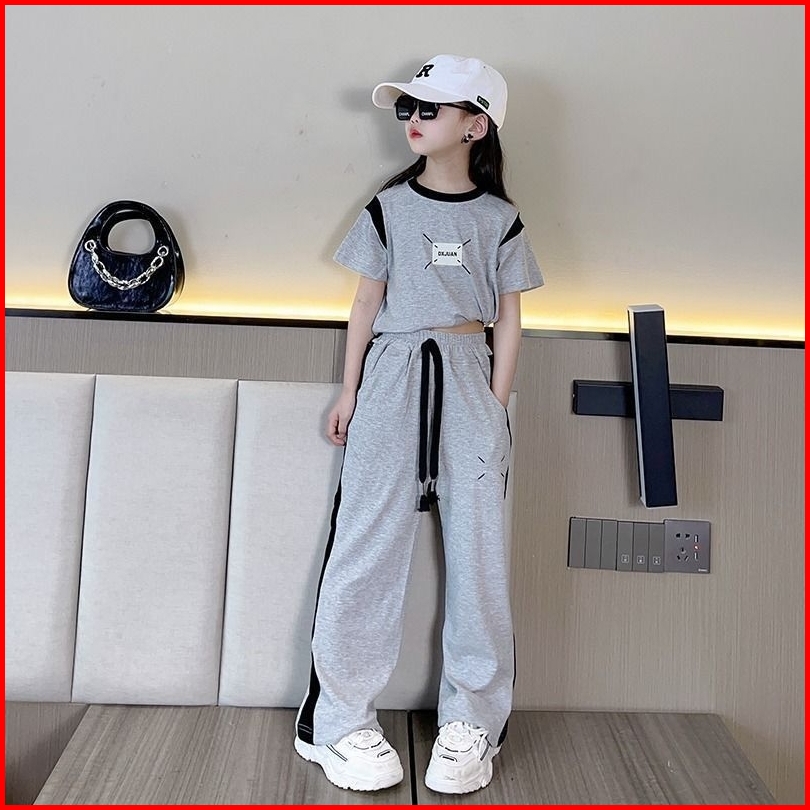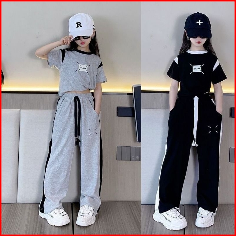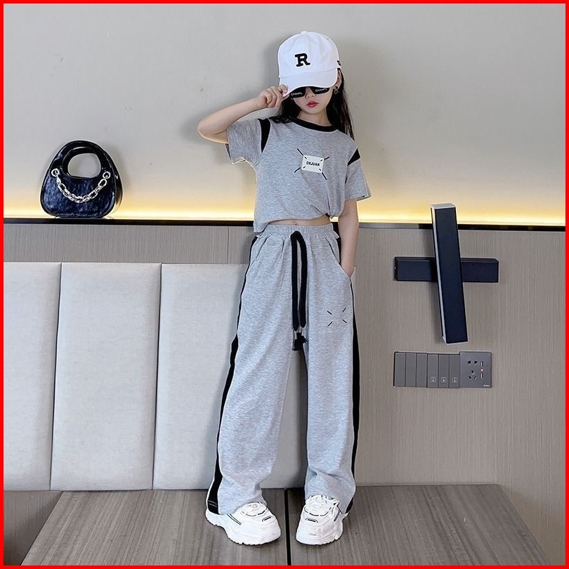 Js23 Setelan Crop Anak Perempuan Lengan Pendek Celana Kulot One Set Baju Anak Cewek Usia Tanggung Baju Anak