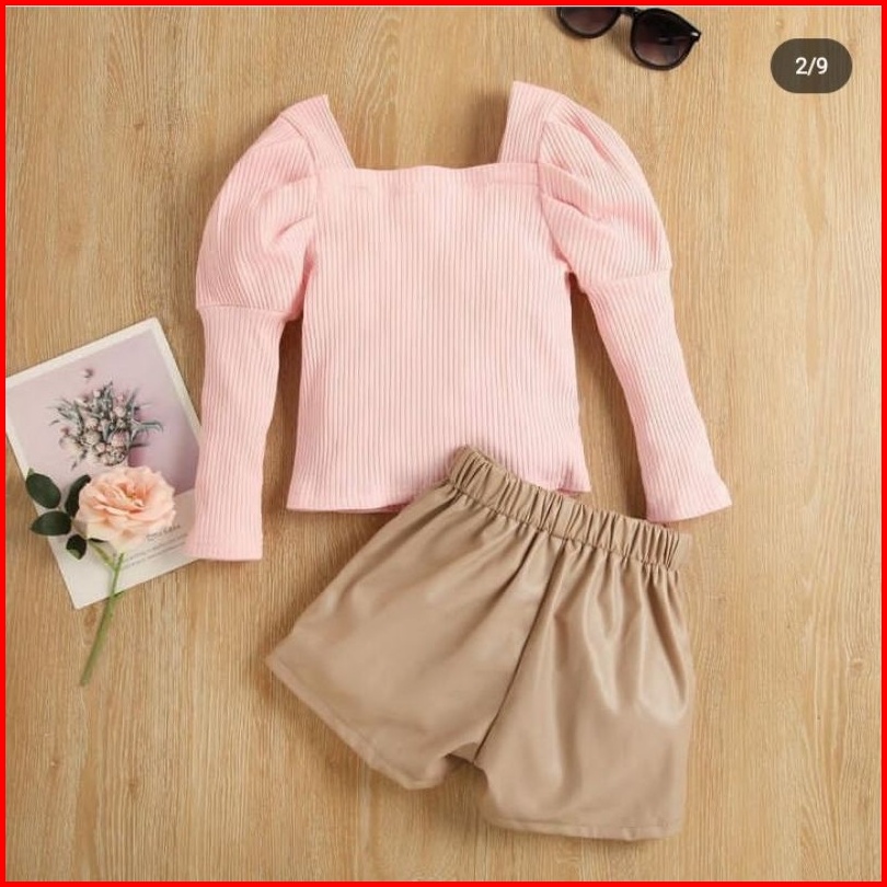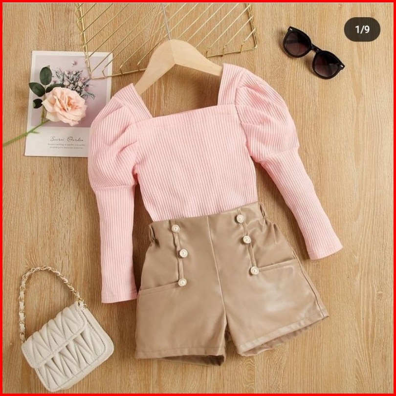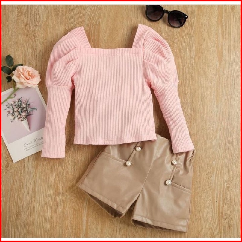 Littleflamingo Inc Setelan Baju Anak Perempuan Lucu Celana Kulit Sintetis Ready Stock