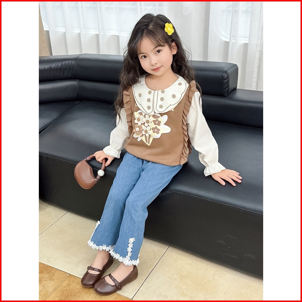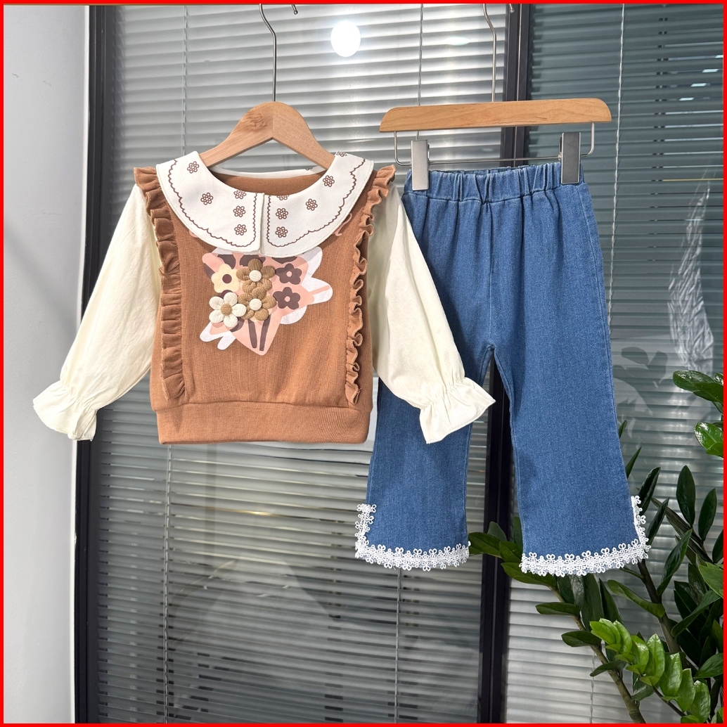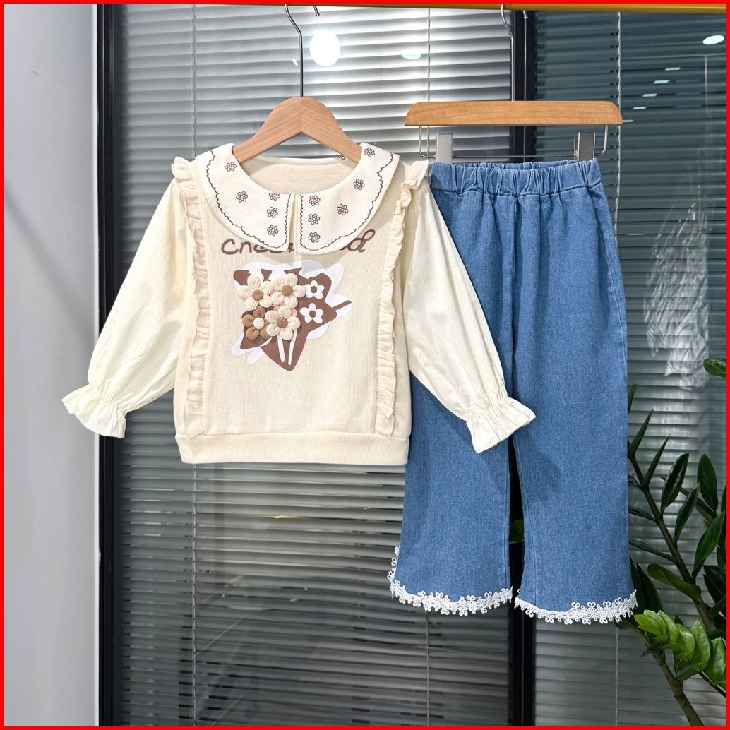 Kidsmains Setelan Anak Perempuan Baru Gaya Korea Set Jeans Kasual Atasan Lengan Panjang Usia 1-4 Th