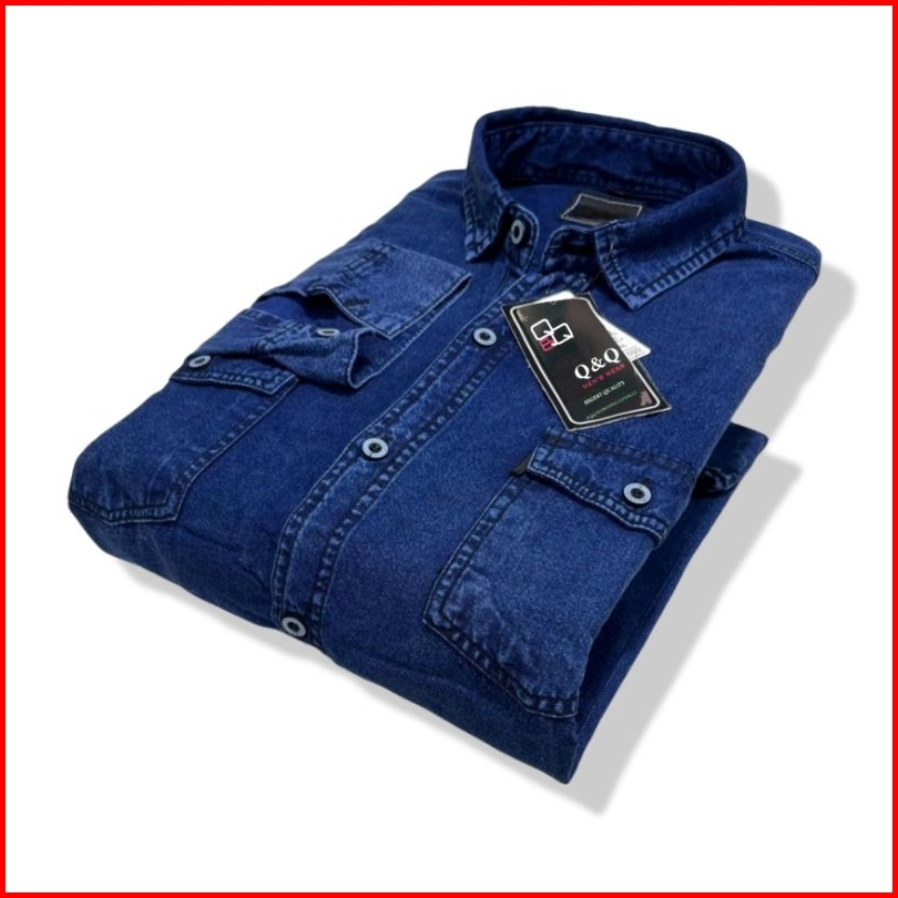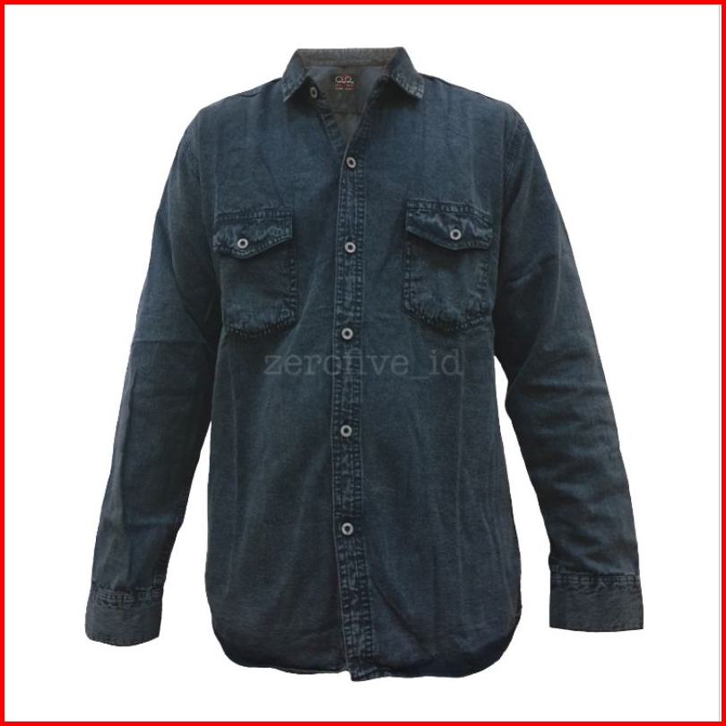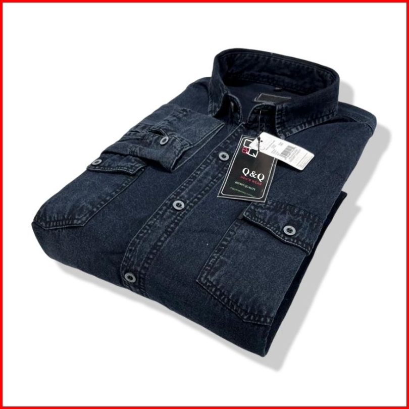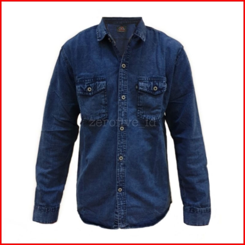 Kemeja Jeans Pria Lengan Panjang Biru Tua Denim Size M L Xl