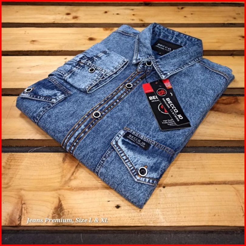 Kemeja Denim Jeans Terlaris Lengan Panjang Ukuran Reguler Fit Kemeja Bahan Jeans Baju Denim