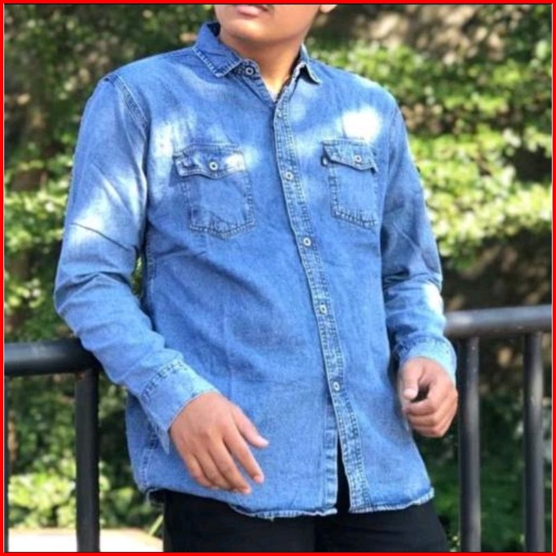 Kemeja Denim Jeans Terlaris Lengan Panjang Ukuran Reguler Fit Kemeja Bahan Jeans Baju Denim