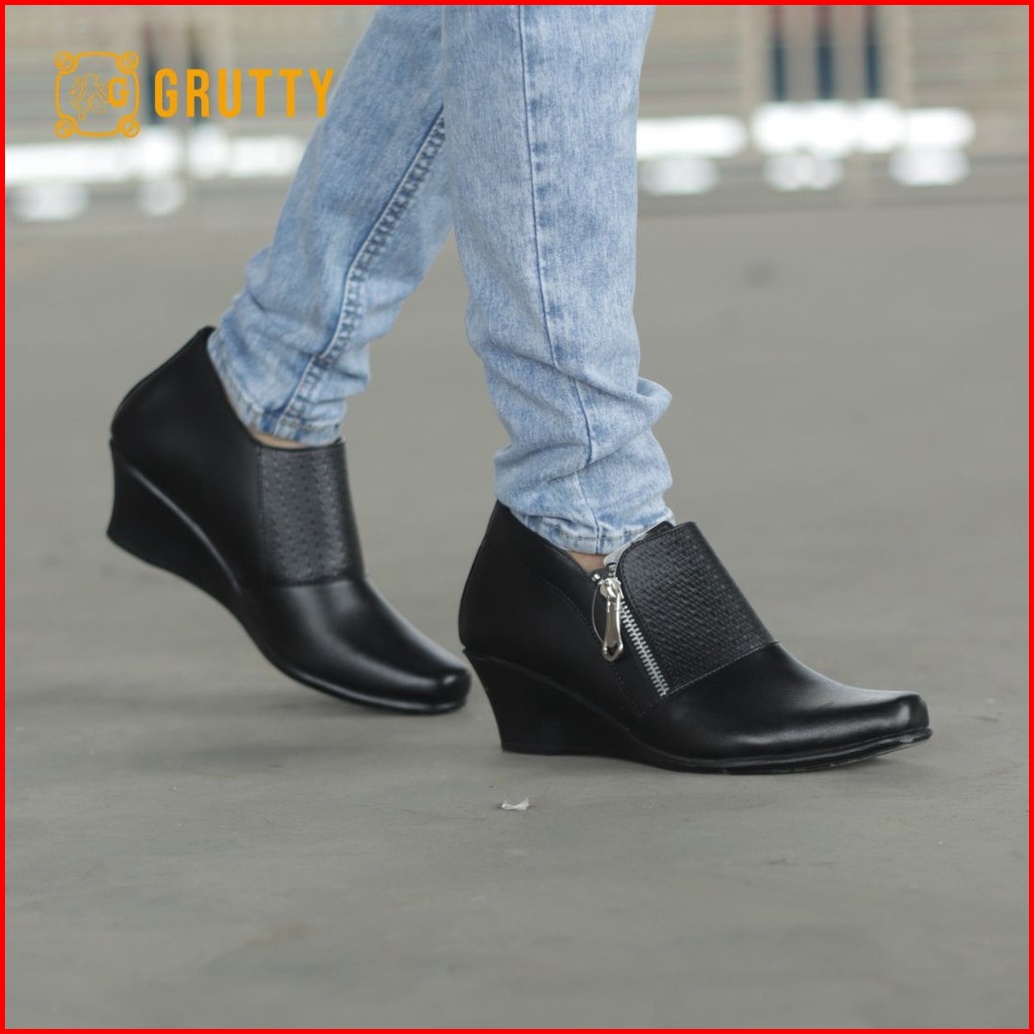 Sepatu Boots Wanita Kulit Pantofel Kerja Wanita Grutty Vioni Hitam