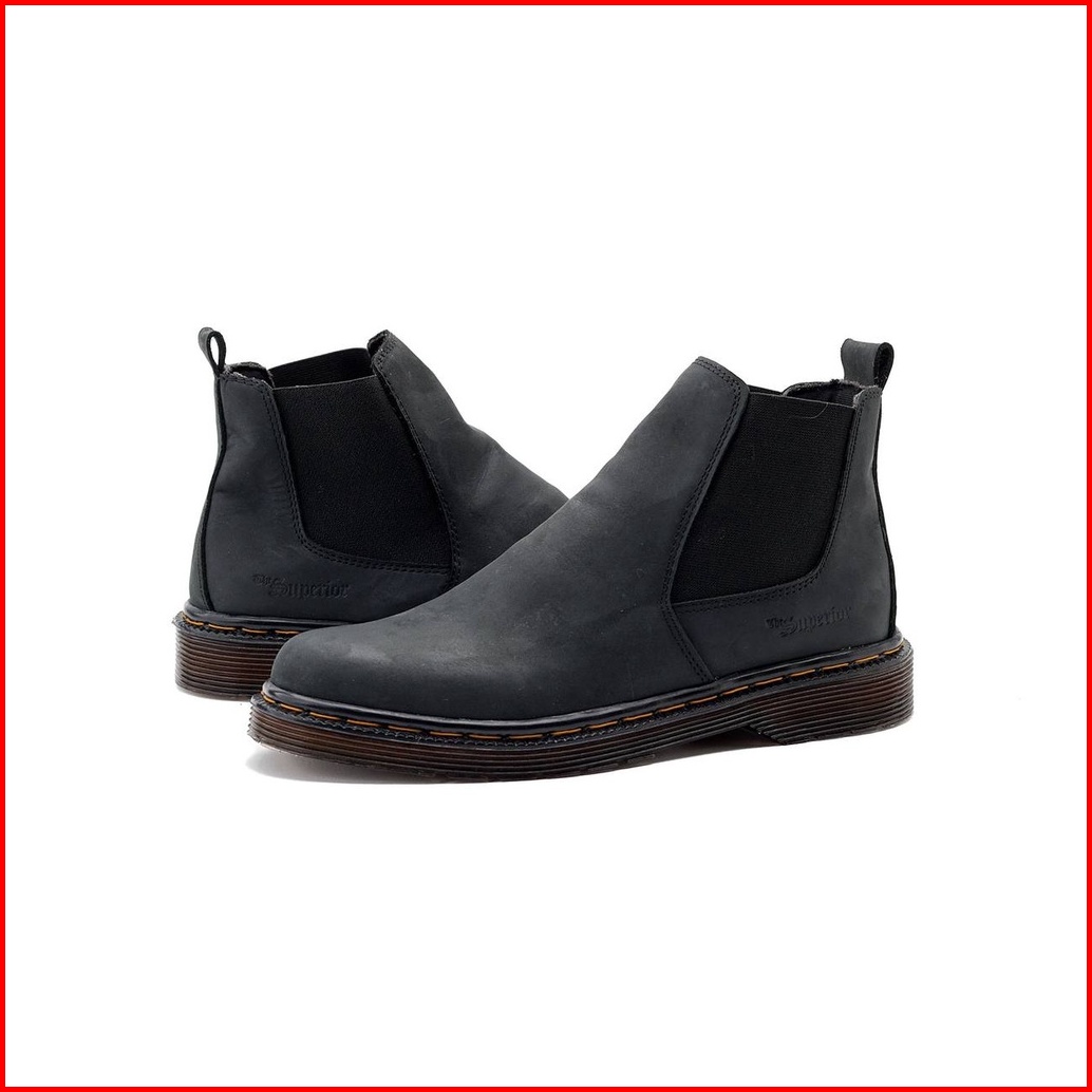 Mancow Chelsea Boots Crazy Horse Hitam Sepatu Formal Pria Wanita Original Kulit Asli