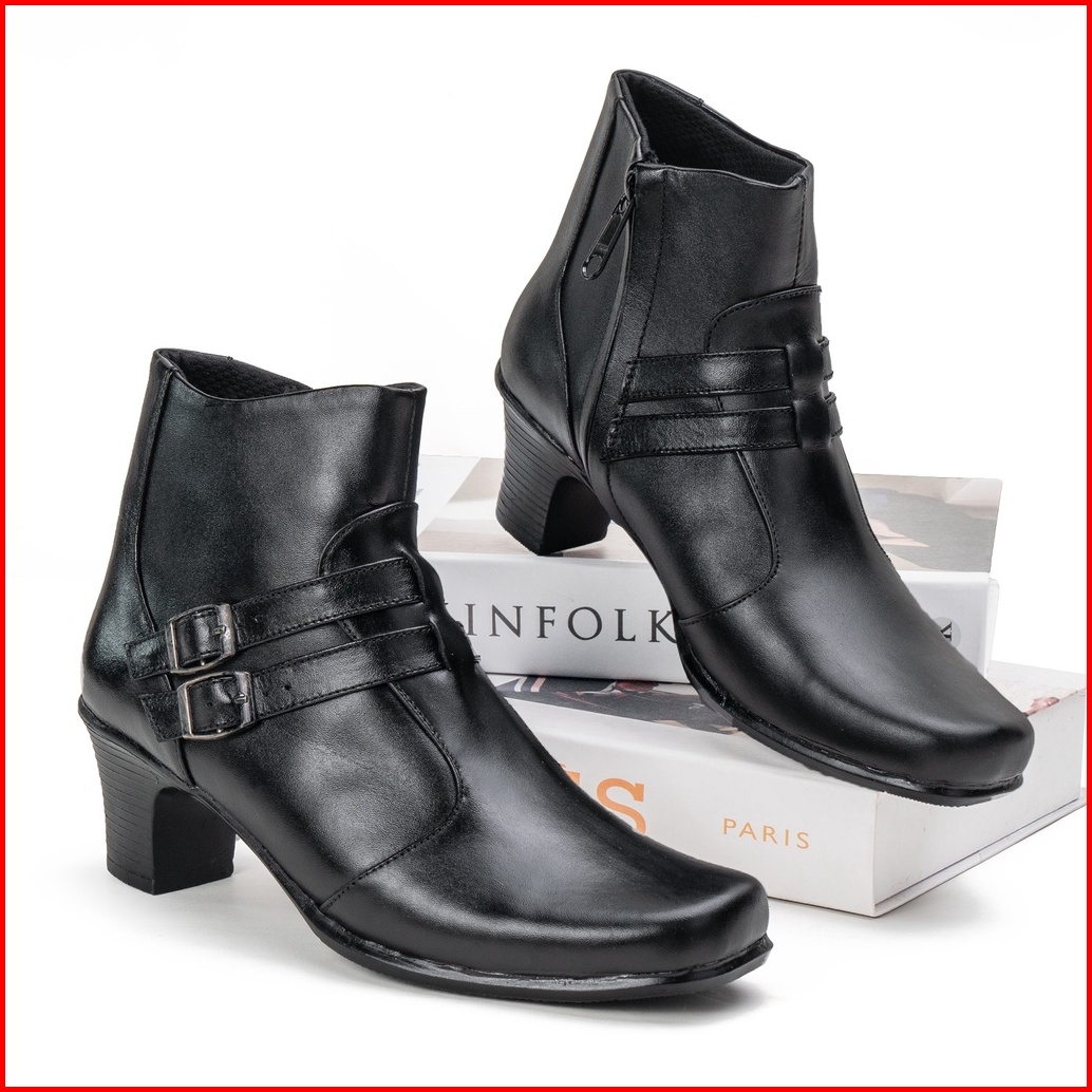 Sepatu Boots Formal Wanita Pantofel Cewek Tanpa Tali Bot Hak 5cm Kulit Asli Premium Pdh Original Bv2004