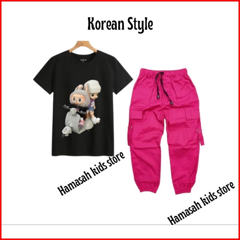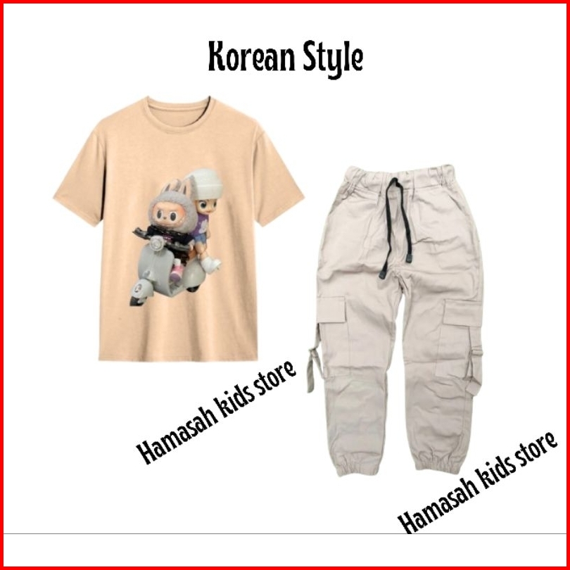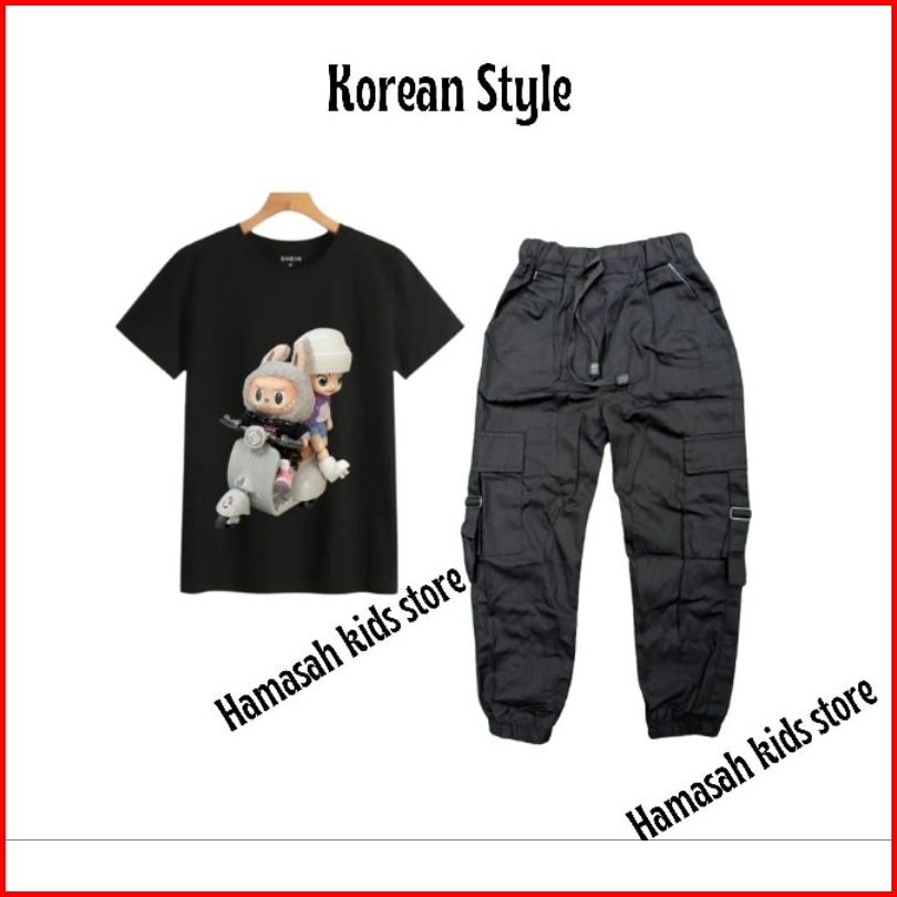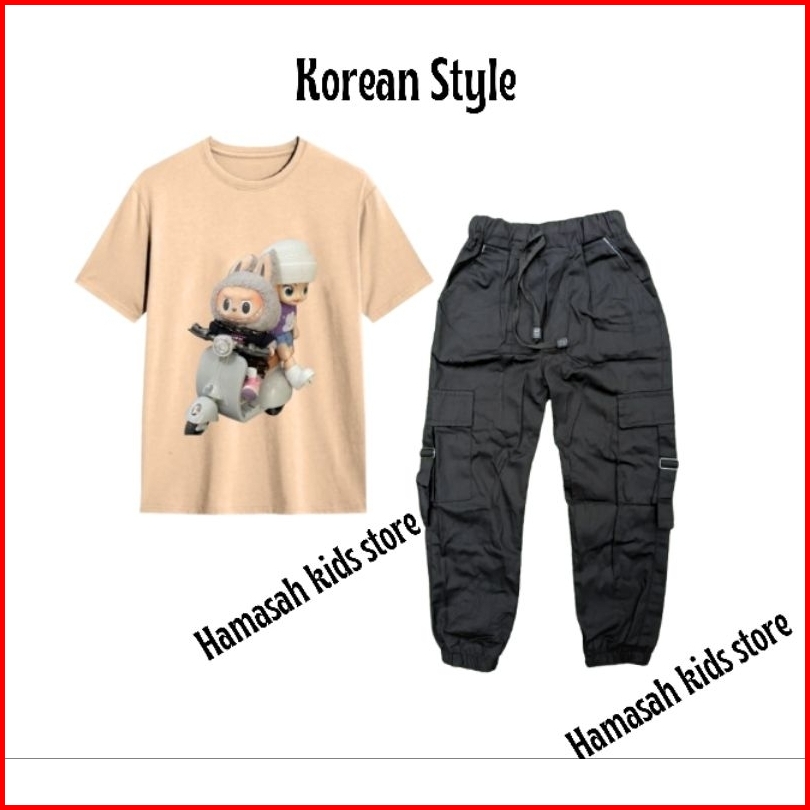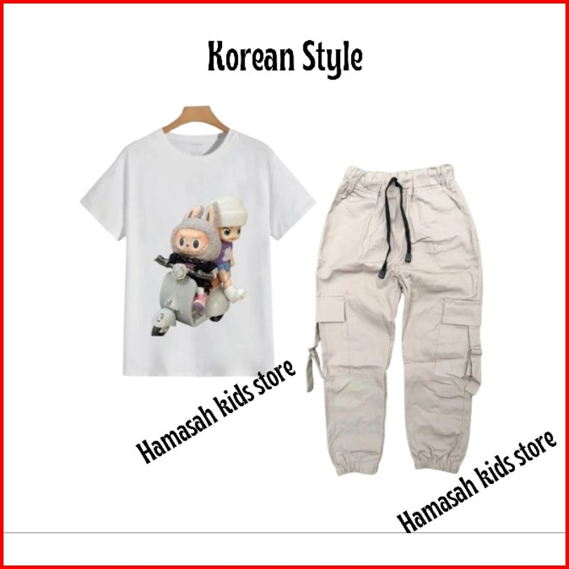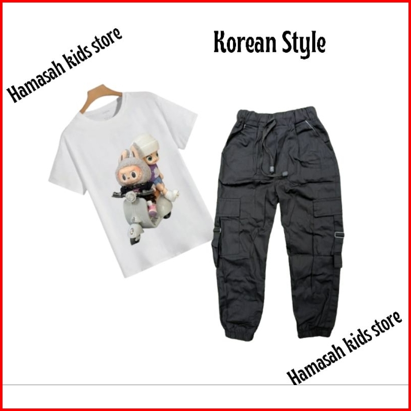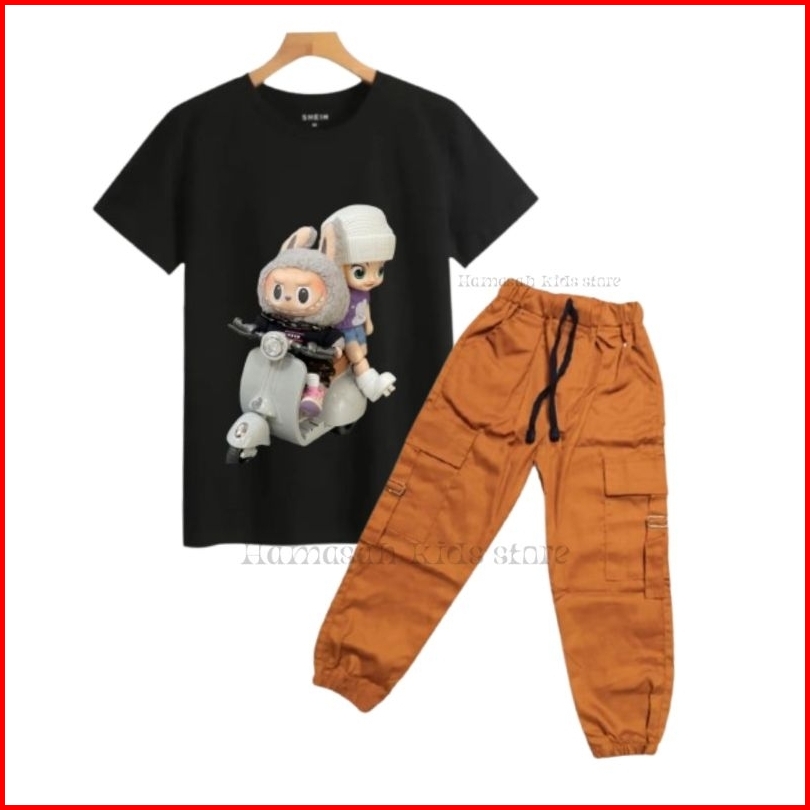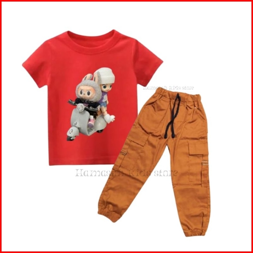 Setelan Joger Cargo Baju Labubu Vespa Bucin Anak Unisex 1-13 Tahun Laki Laki-one Set Anak Perempuan Koreant Style Americ