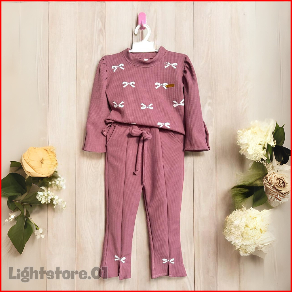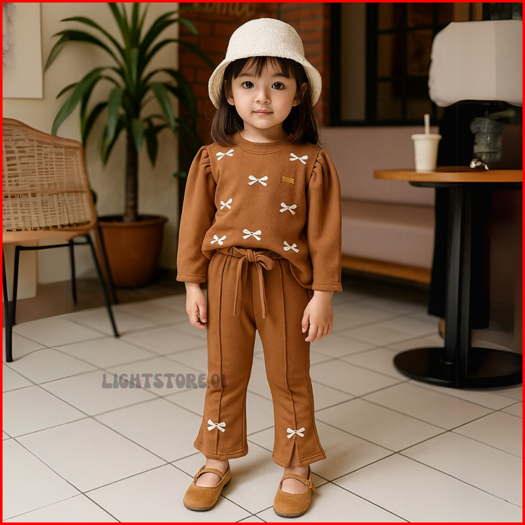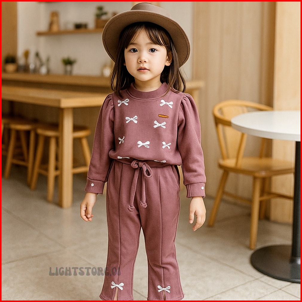 Setelan Baju Pita Anak Perempuan Panjang Celana Cutbray Usia 2-12 Tahun