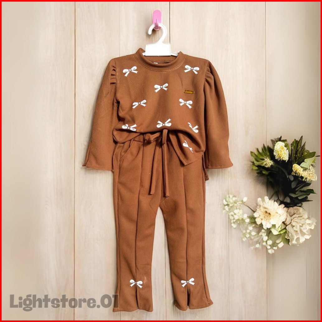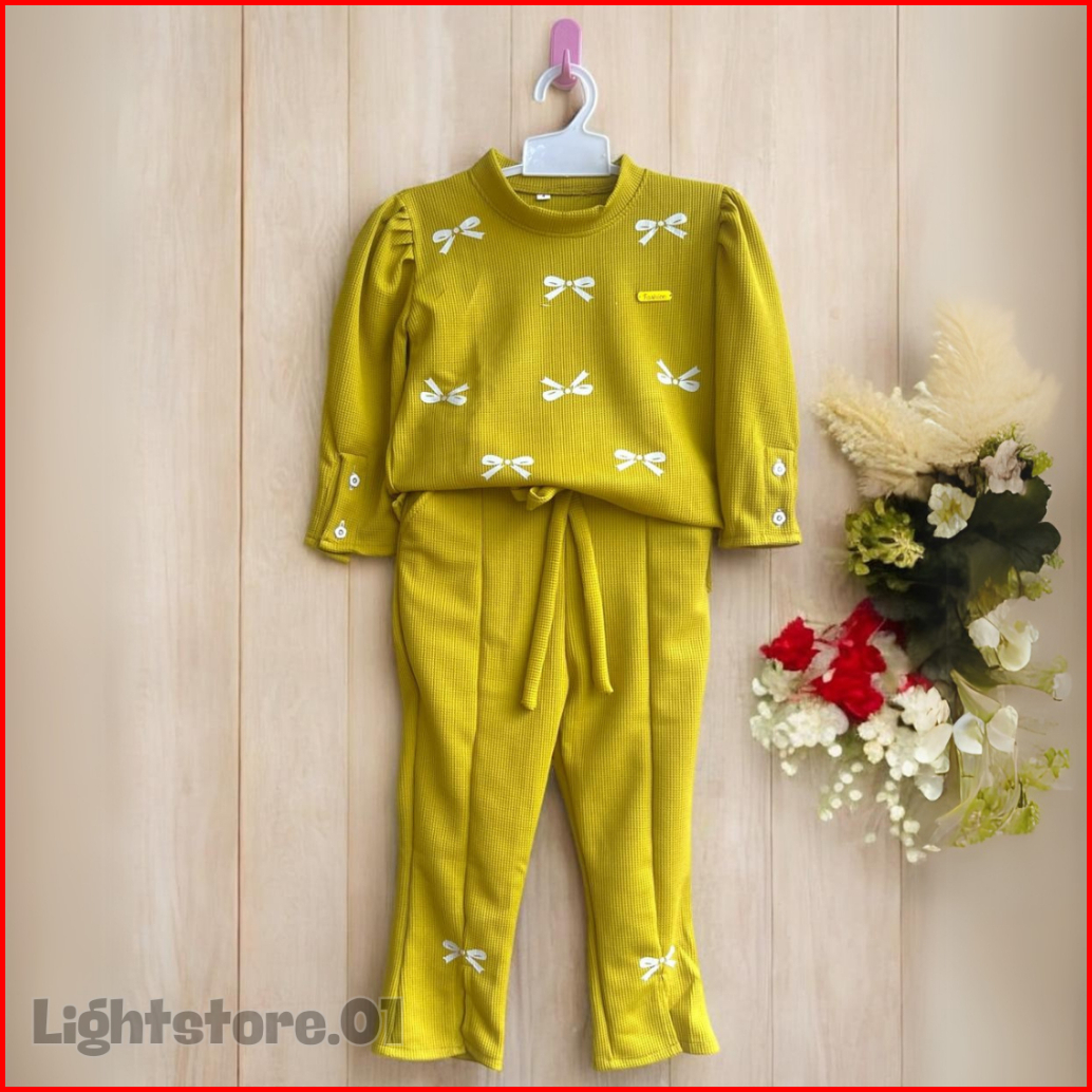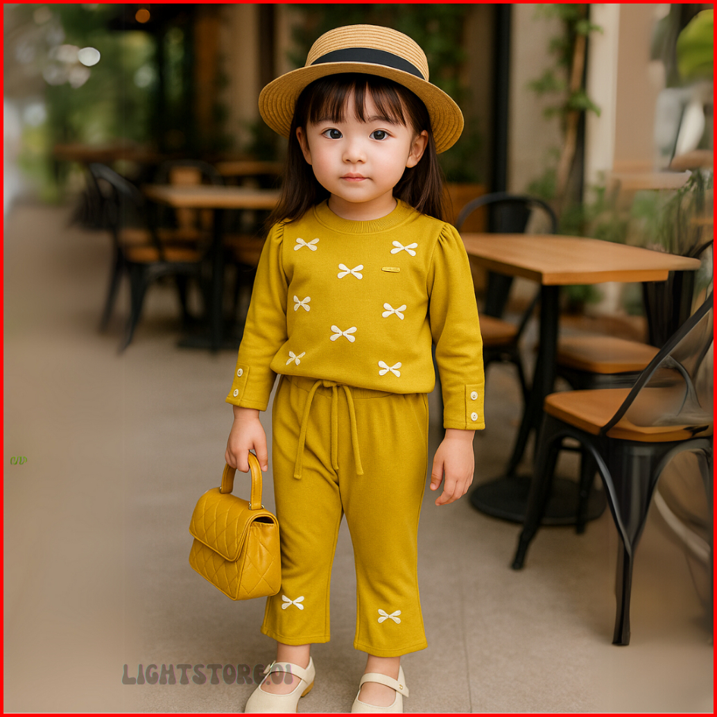 Setelan Baju Pita Anak Perempuan Panjang Celana Cutbray Usia 2-12 Tahun