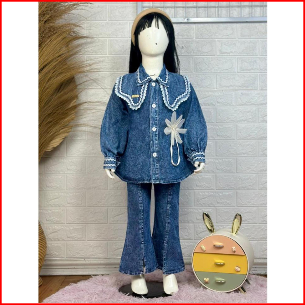 Cintafashion Baju Setelan Celana Anak Perempuan Callista Full Jeans Anak Usia 4-12 Tahun - One Set Anak Perempuan