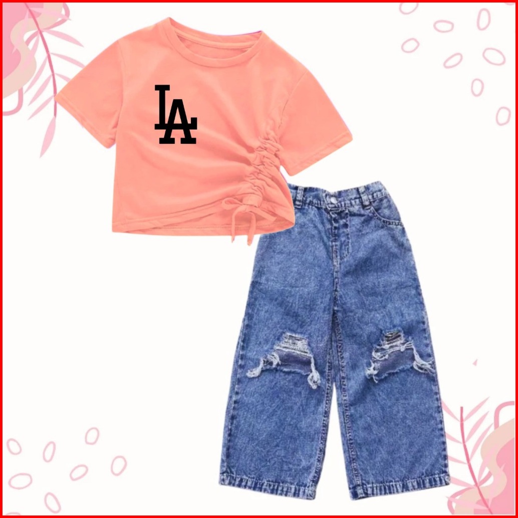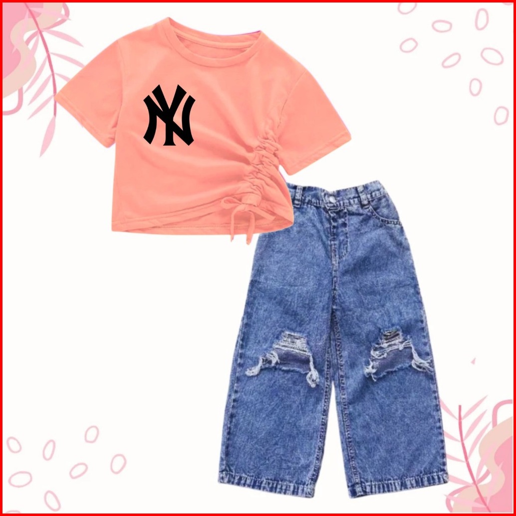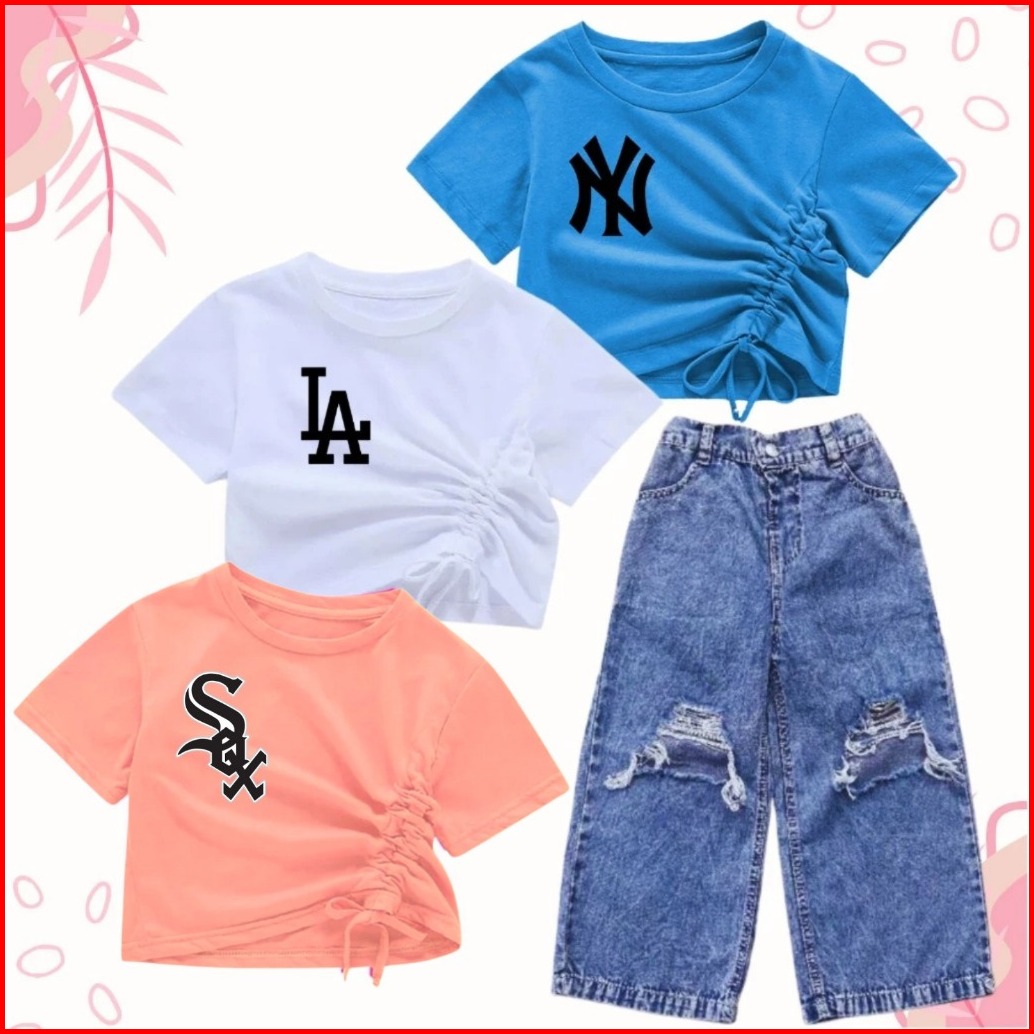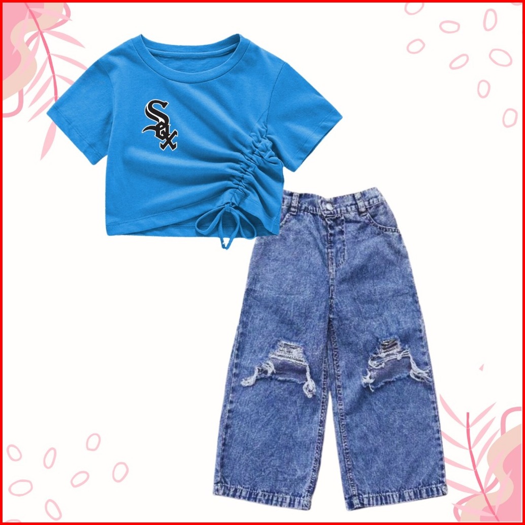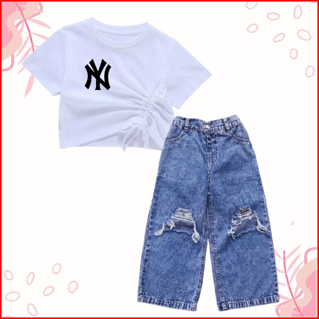 Setelan Kulot Sobek Kaos Crop Top Anak Perempuan 1-10 Th