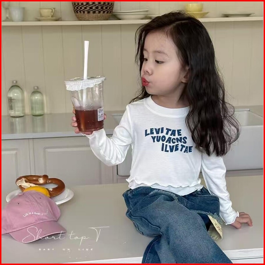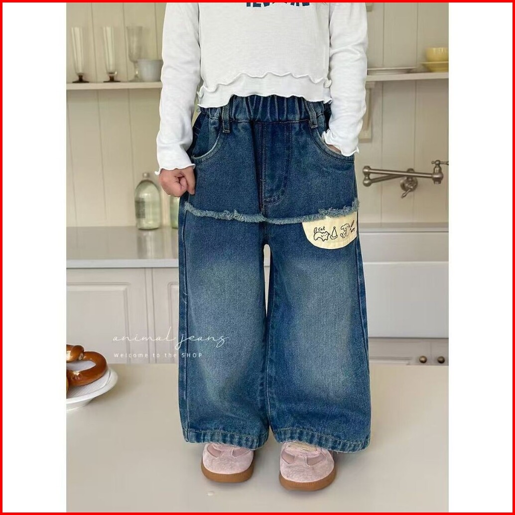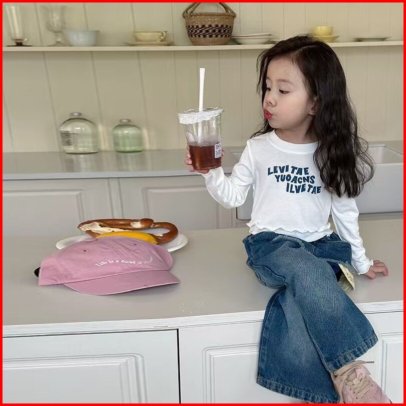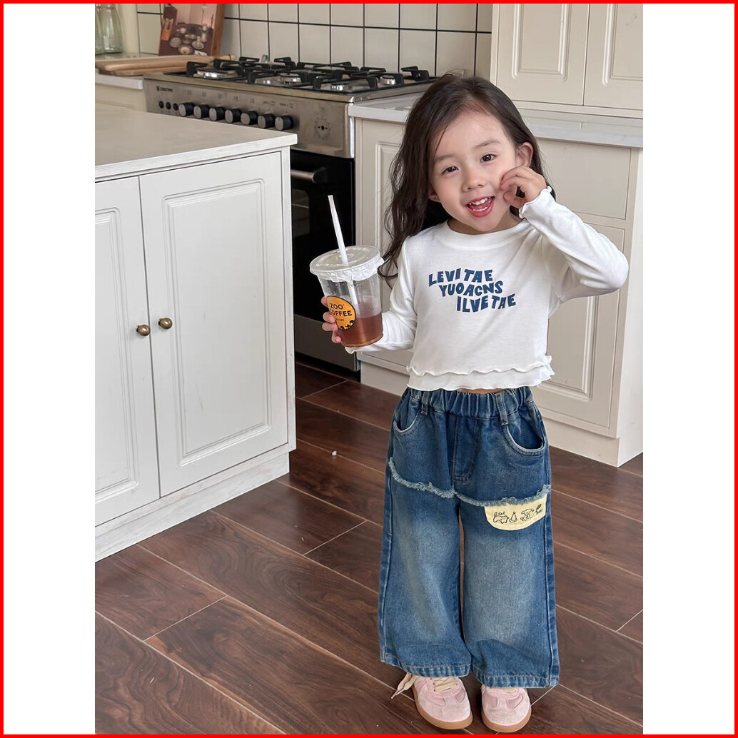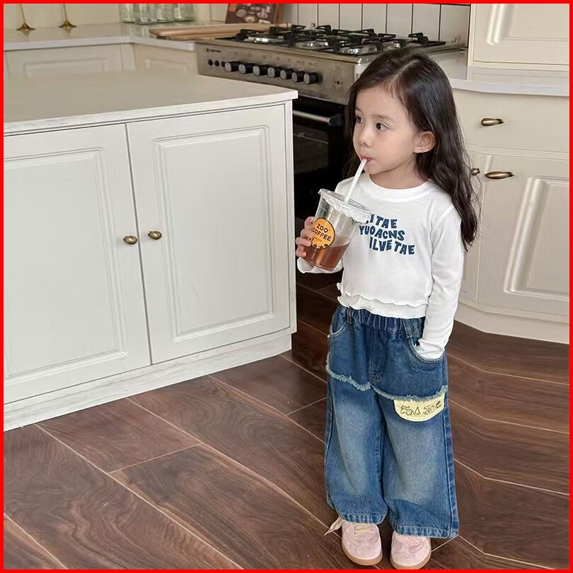 Setelan Anak Perempuan Atasan Design Sablon Celana Jeans Kulot Baju Anak Cewek Lengan Panjang Kekinian Ootd Korean Style