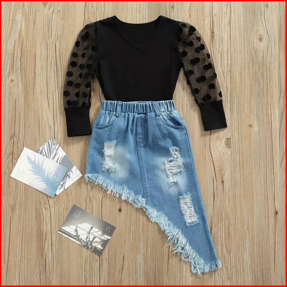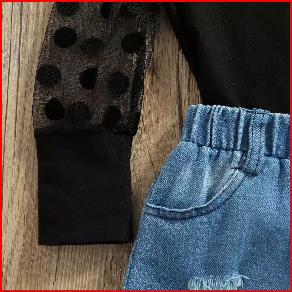 Lexa Girl Set Setelan Fashion Anak Perempuan Import Baju Anak Perempuan Motif Polkadot Hitam