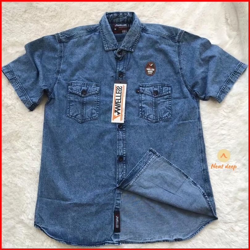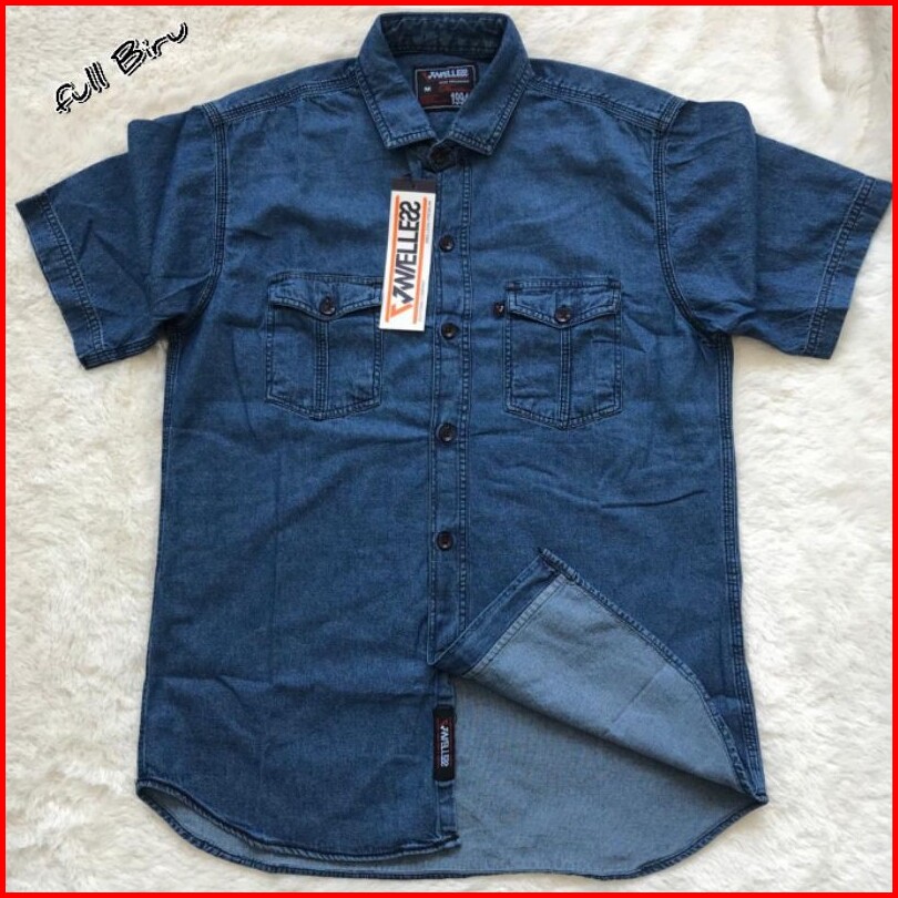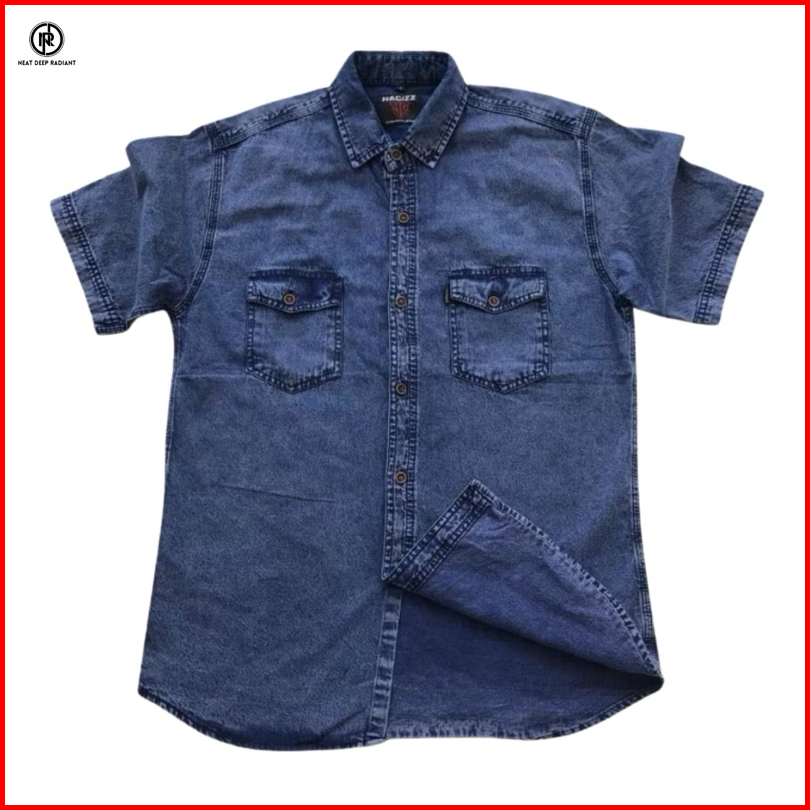 Kemeja Jeans Denim Lengan Pendek Casual Snow Blue Snow Black Snow White