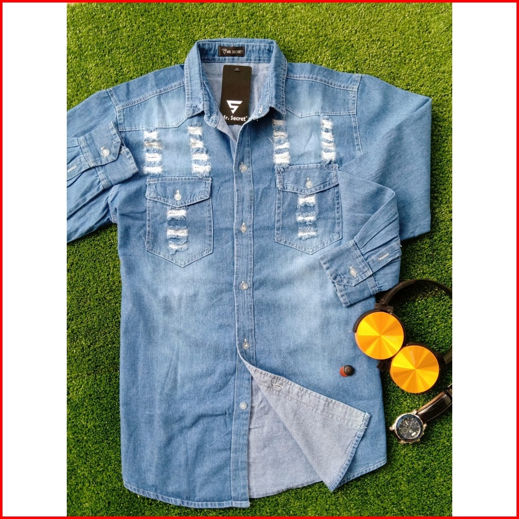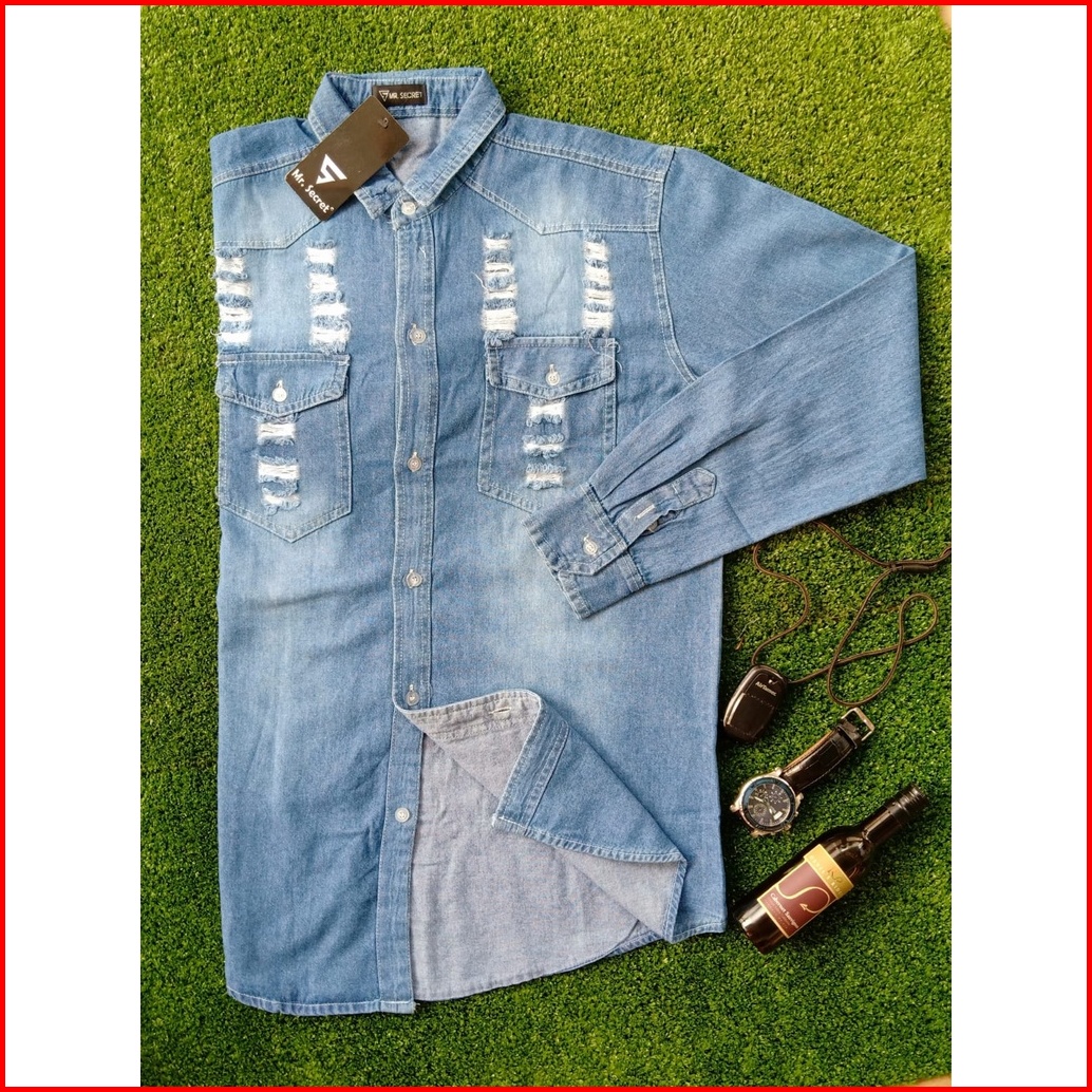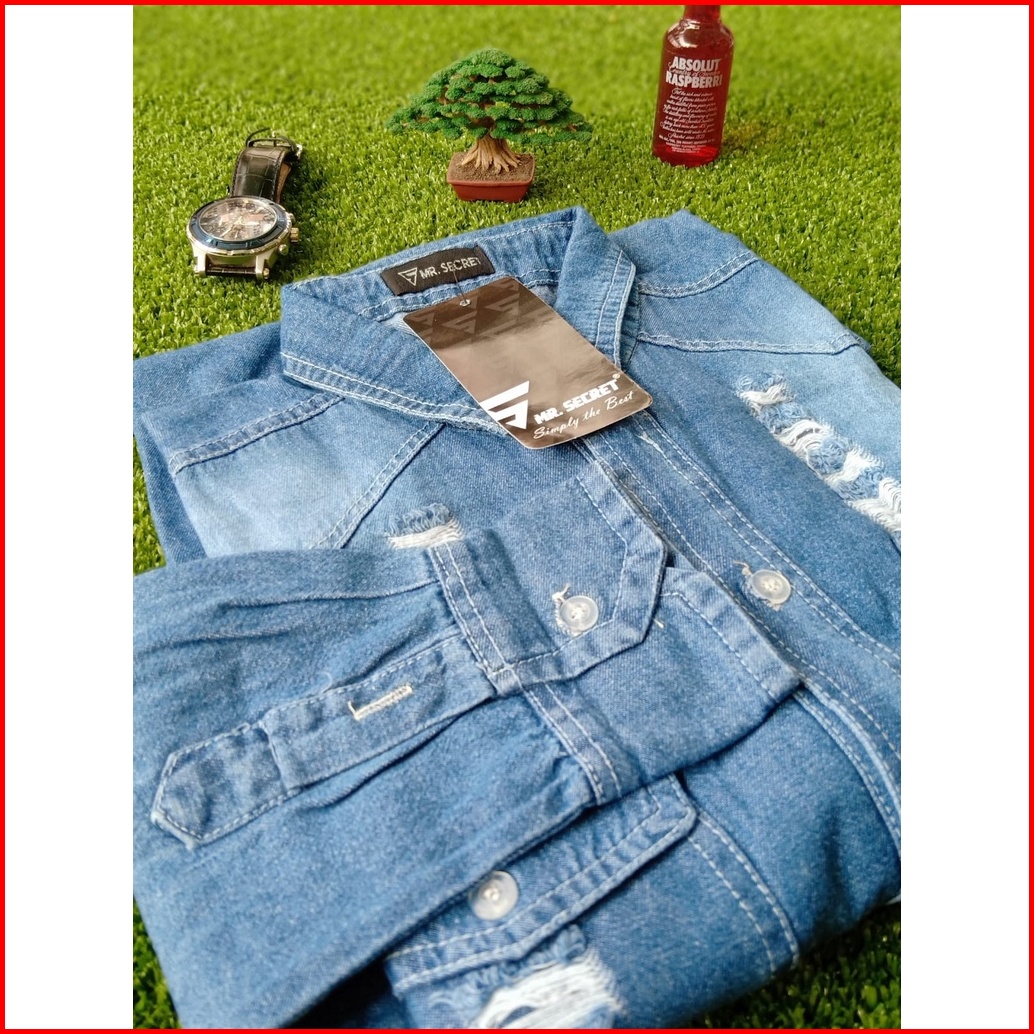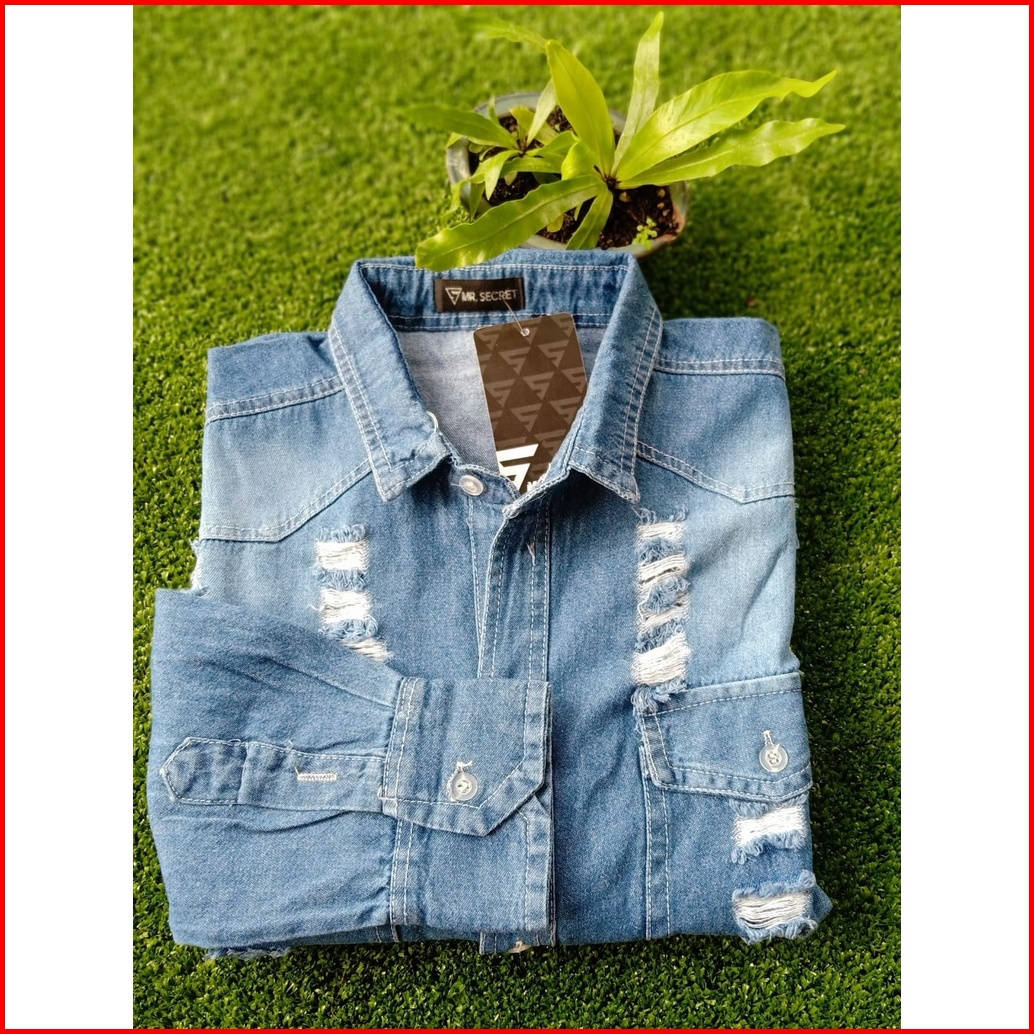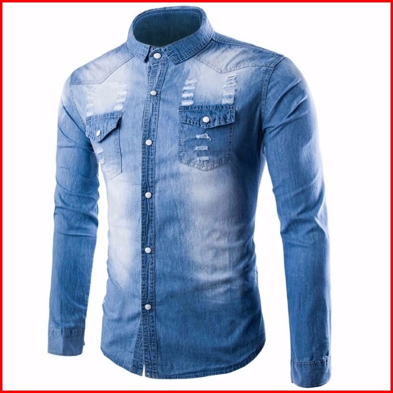 Martel Fashion Kemeja Pria Jeans Lengan Panjang Denim Kerah Wash Ori Semi-slimfit Formal Modis Keren Stylish Halus Terla