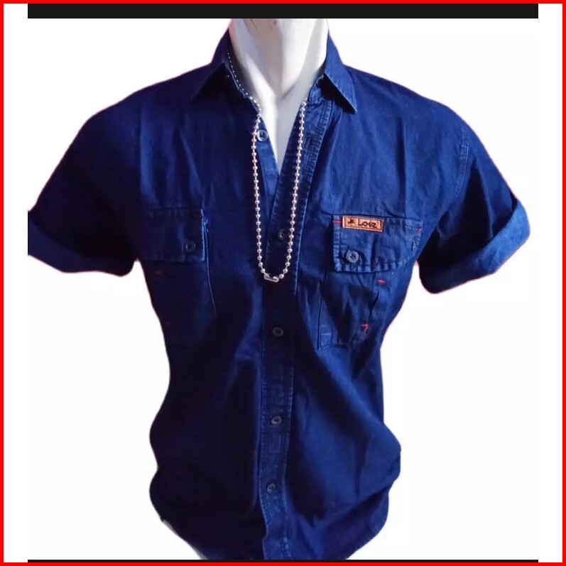 Kemeja Denim Lengan Pendek Kemeja Jean Pria