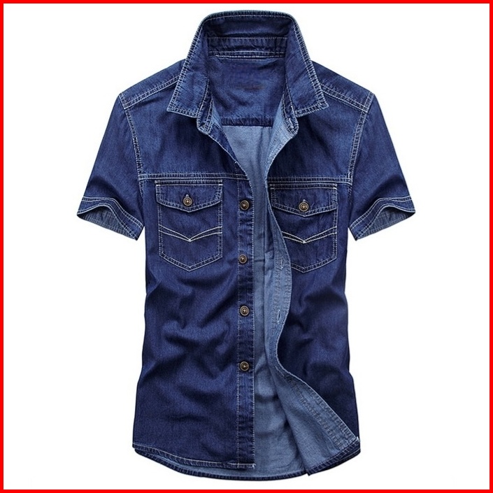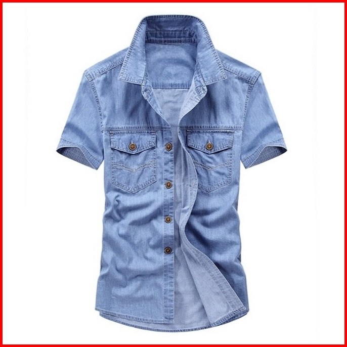 Mr.versus.kemeja Jeans Fortune Ah.m-l Bahan Jeans Premium.kemeja Pria Lengan Pendek.ada Saku Kiri Kanan