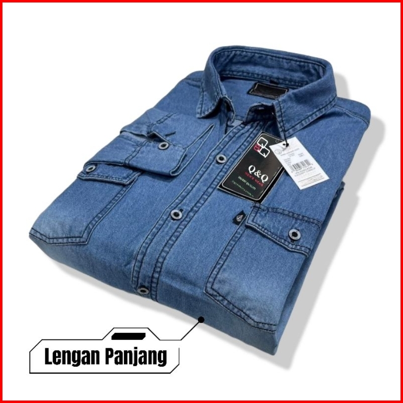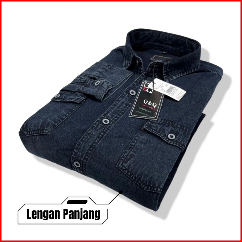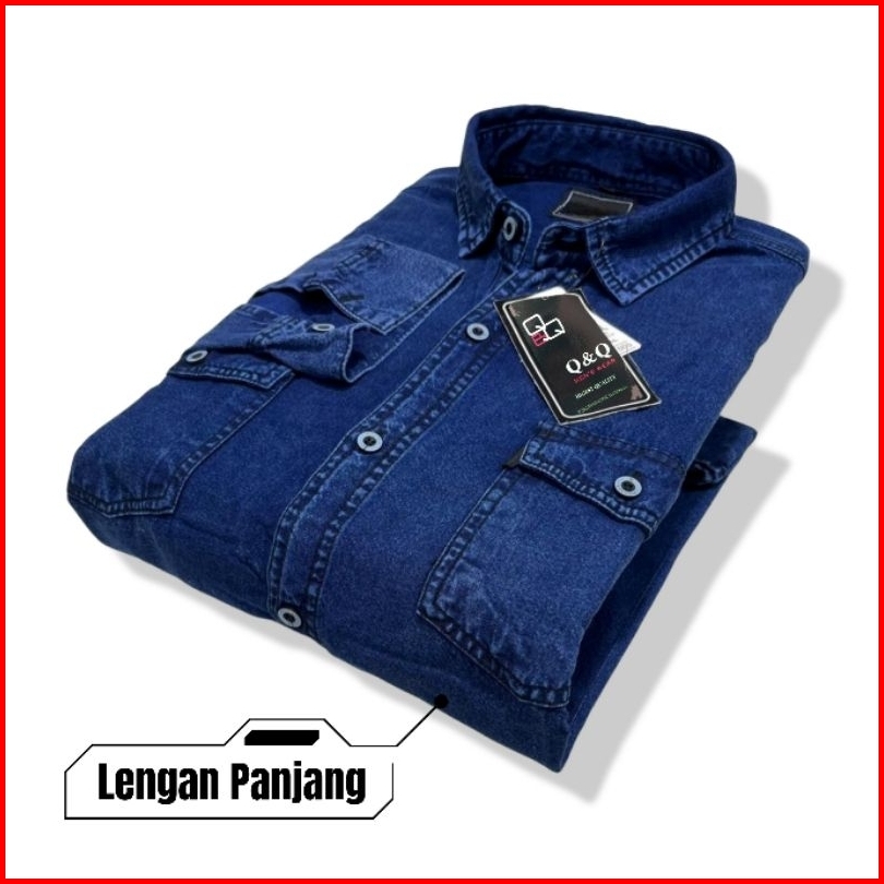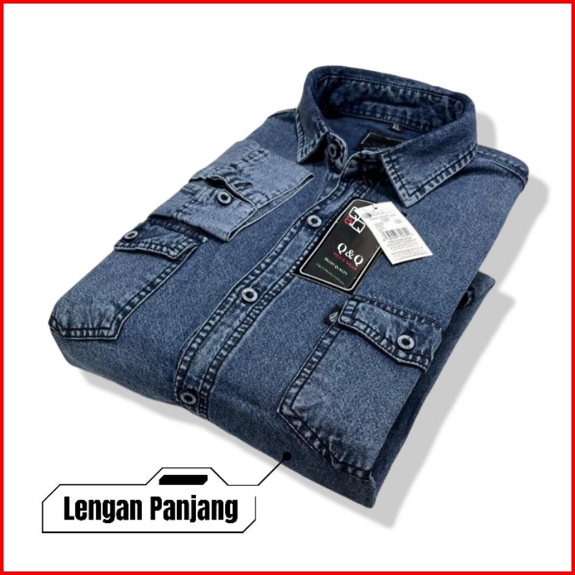 Kemeja Jeans Pria Lengan Panjang Kasual Denim Biru Tua M L Xl
