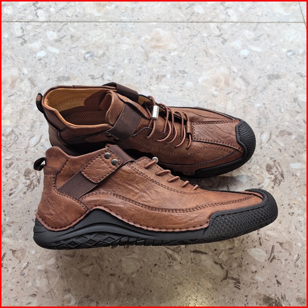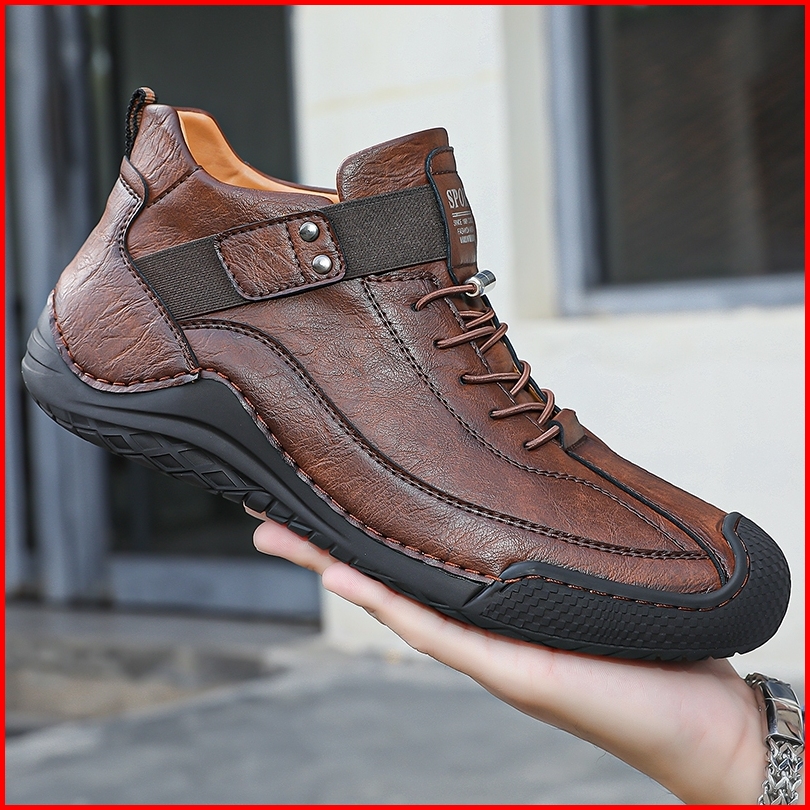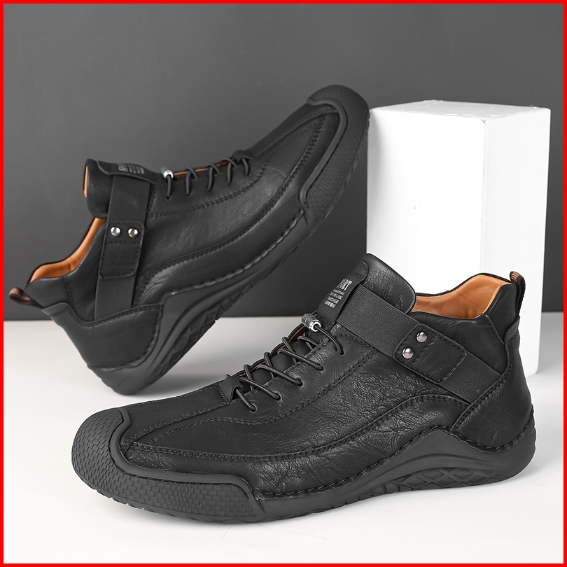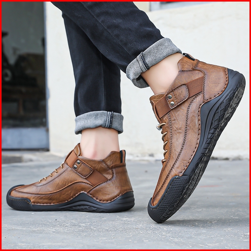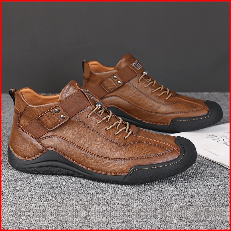 Fashion Klasik Sepatu Boots Pria Tinggi Kulit Asli Original Formal Kerja Lentur Karet Handmade Keren Anti Slip Kekinian