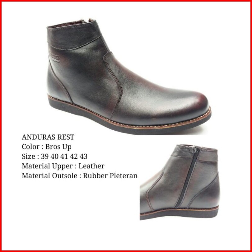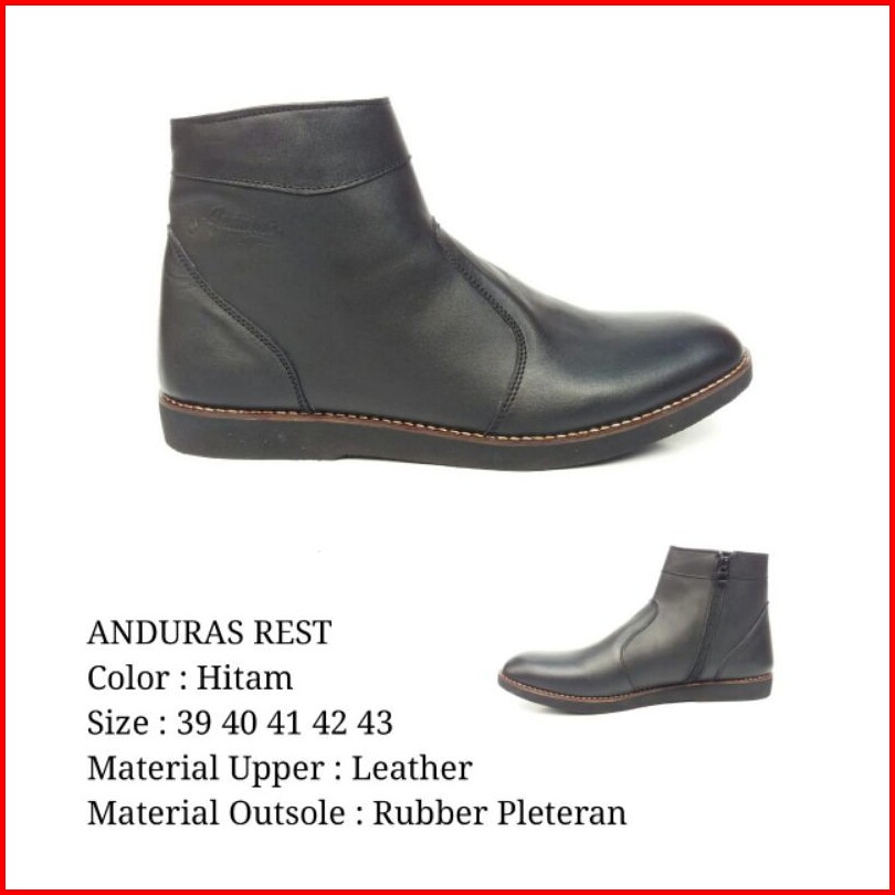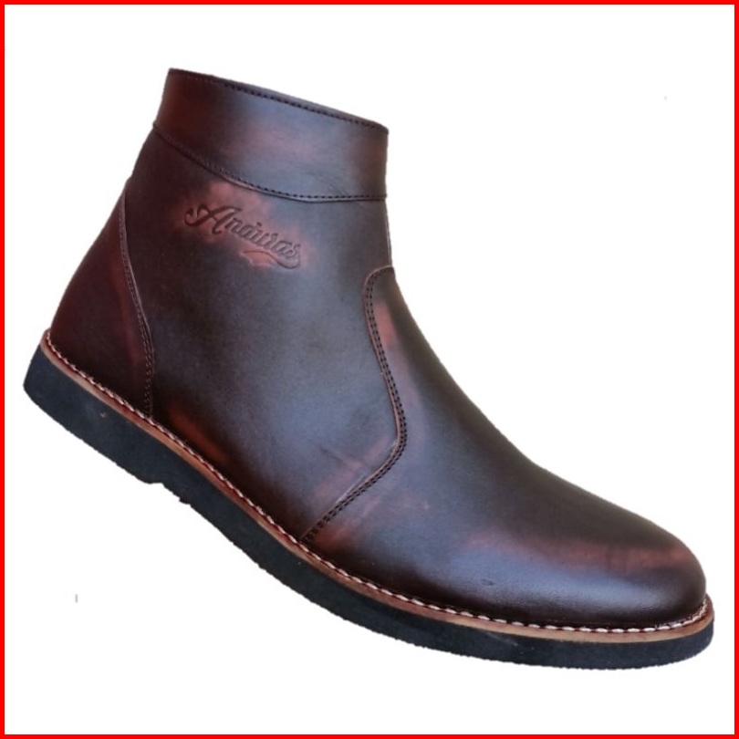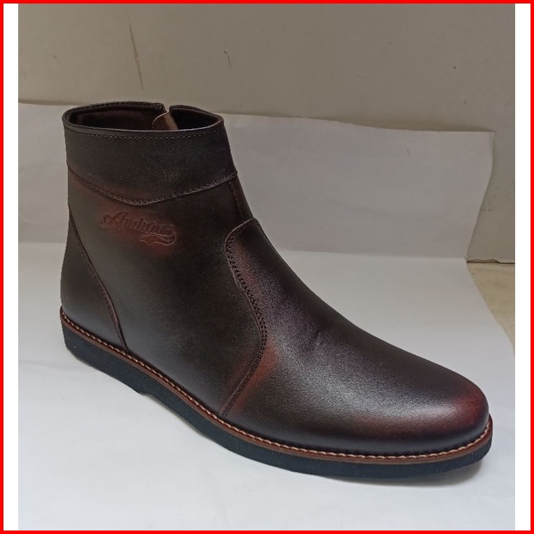 Sepatu Kulit Anduras Sepatu Pantopel Pria Formal Kerja Casual Boots Sleting Kantor Kulit Asli