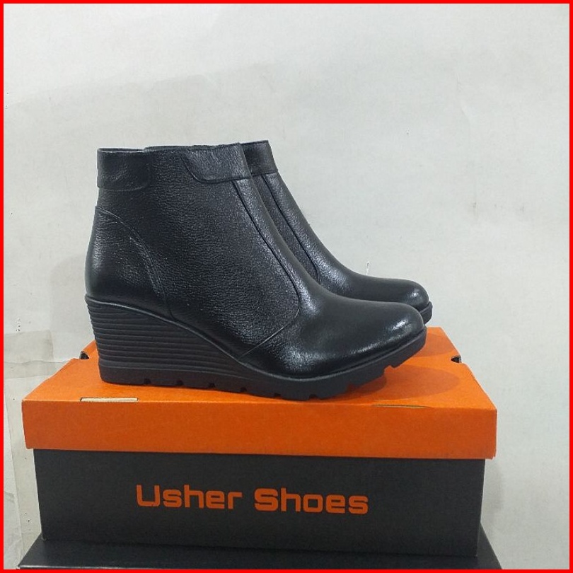 Sepatu Boots Wanita Original Kulit Asli Hak Wedgees Model Resleting Polos Kulit Sapi Premium