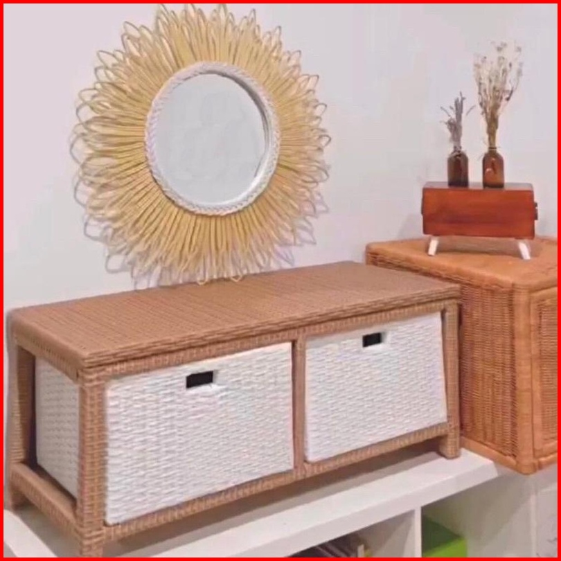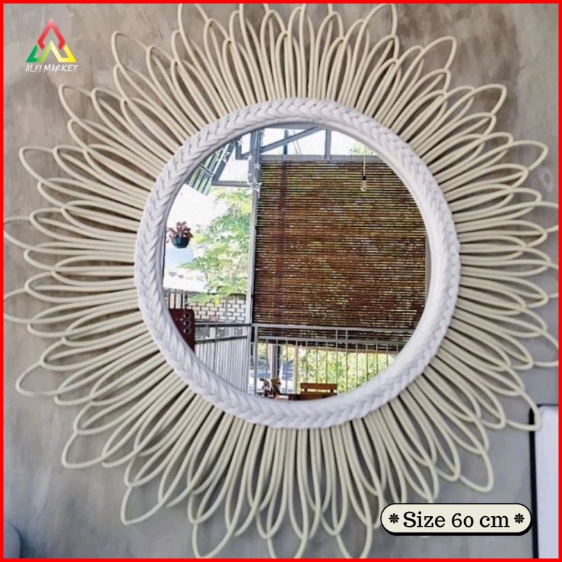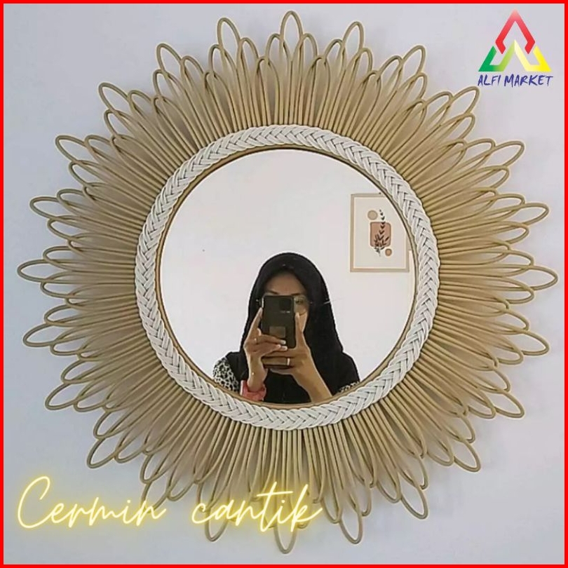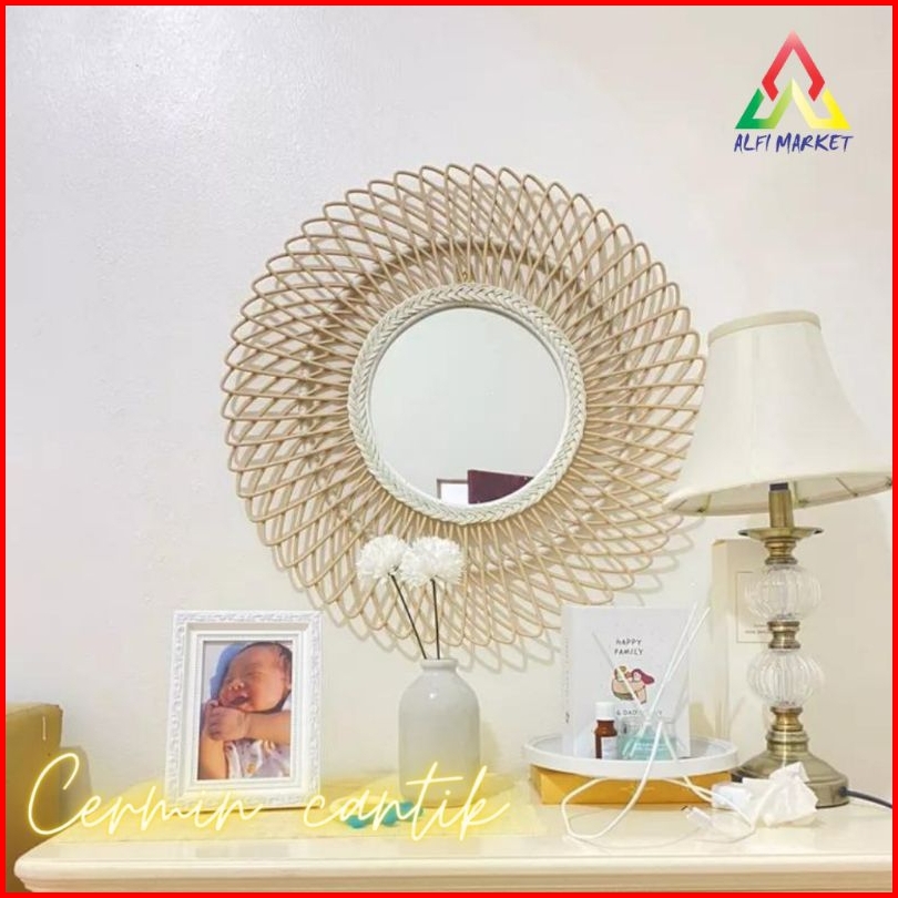 Alfi Kaca Rotan Premium Cermin Cantik Aesthetic Mirror Dekorasi Hias Home Decor Minimalis Modern