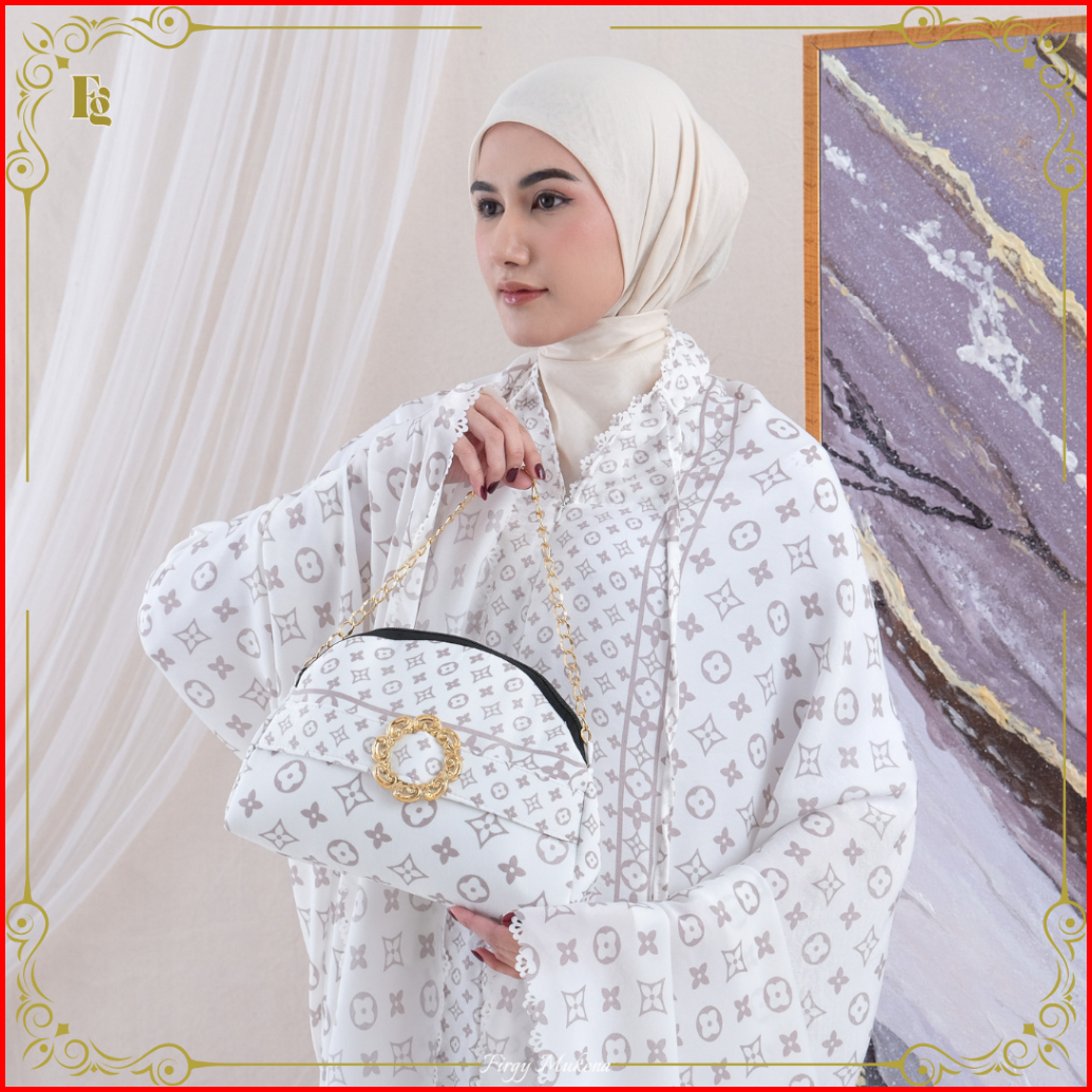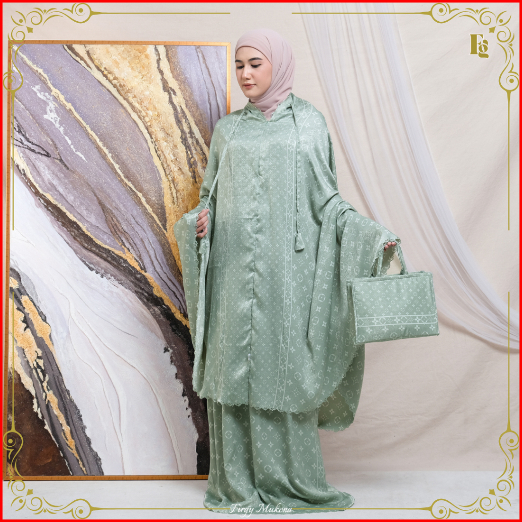 Firgy - Mukena Dewasa 2in1 Santorini Shimmer Silk Motif Lasercut Mewah Arfa Series