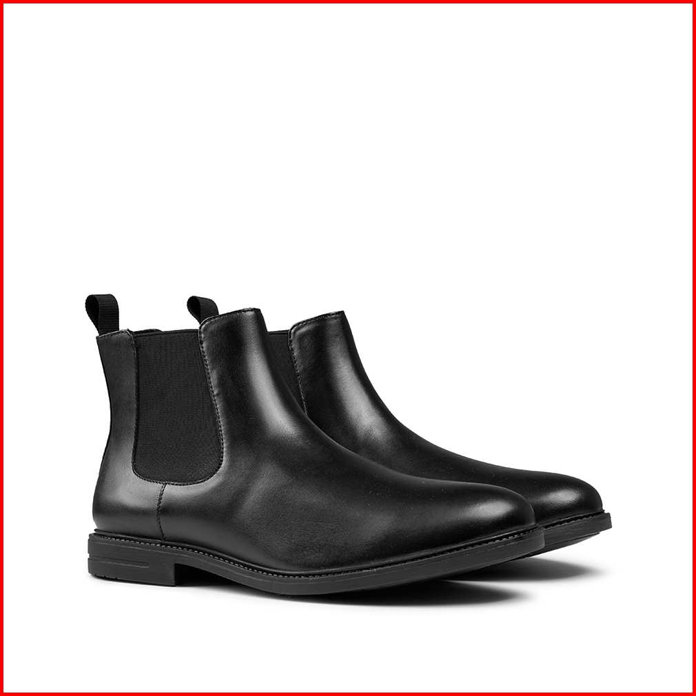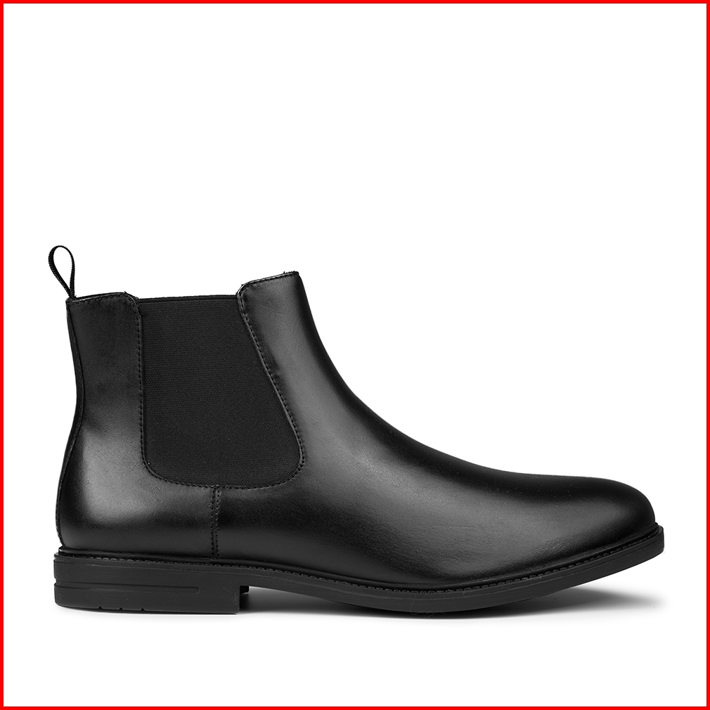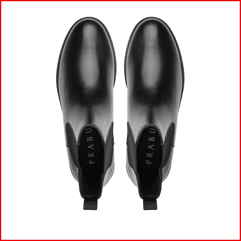 Prabu - Sepatu Kulit Chelsea Boots Pria Aksa Black Hitam