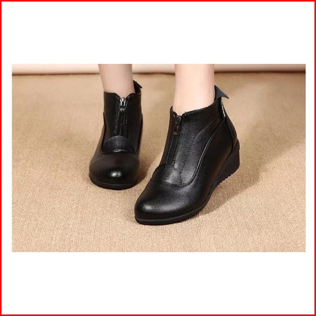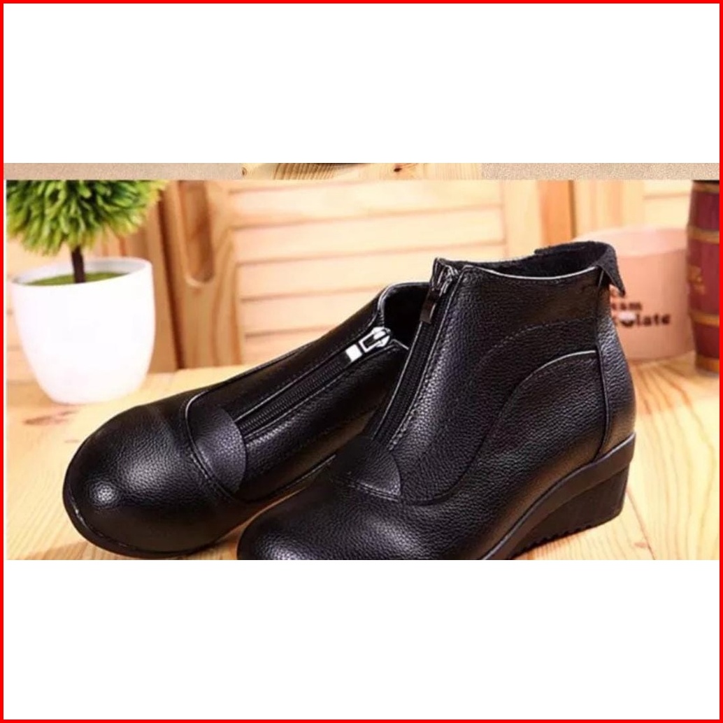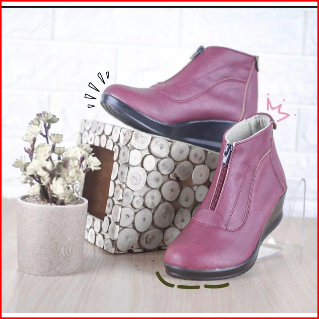 Sepatu Boots Cewek Pantofel Wanita Bahan Kulit Asli Model Sol Wedges Pdh Formal Terbaru Tahun 2023