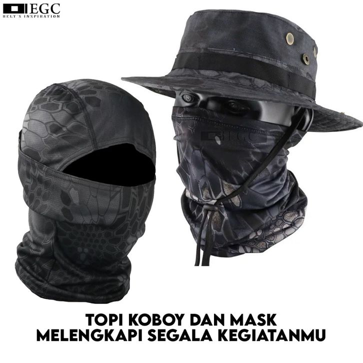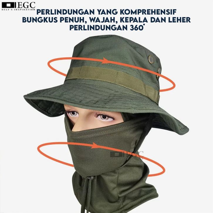 TOPI RIMBA + BUFF NINJA Setelan Topi Gunung Outdoor Hiking Hutan Camping Military Hat Tali TPI-20/21/22