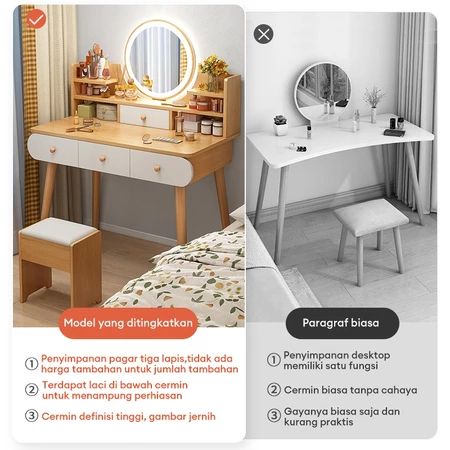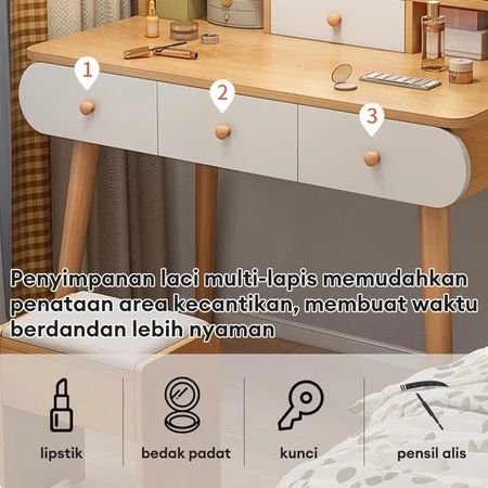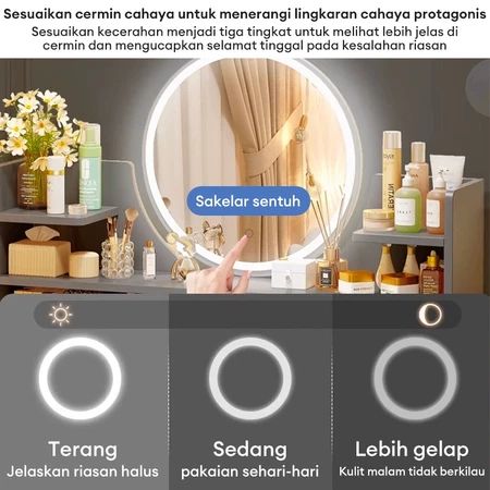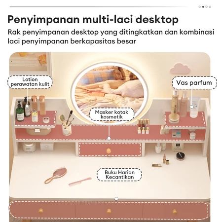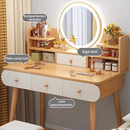 Meja Rias Minimalis Lampu Rak Kosmetik Aesthetic Meja Rias Untuk Hunian Kecil Dilengkapi Lampu Bawaan