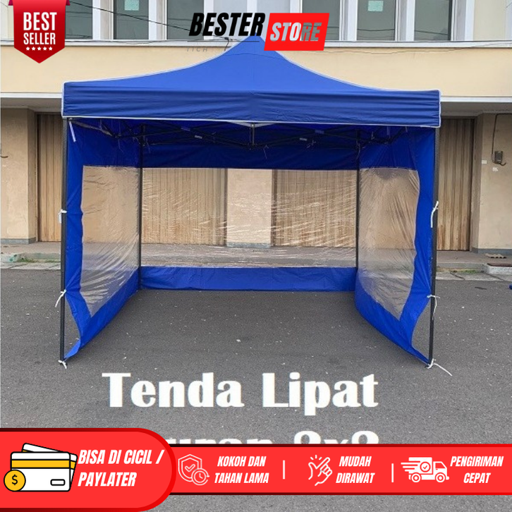 Tenda lipat 2x2 lengkap dinding mika 6 meter