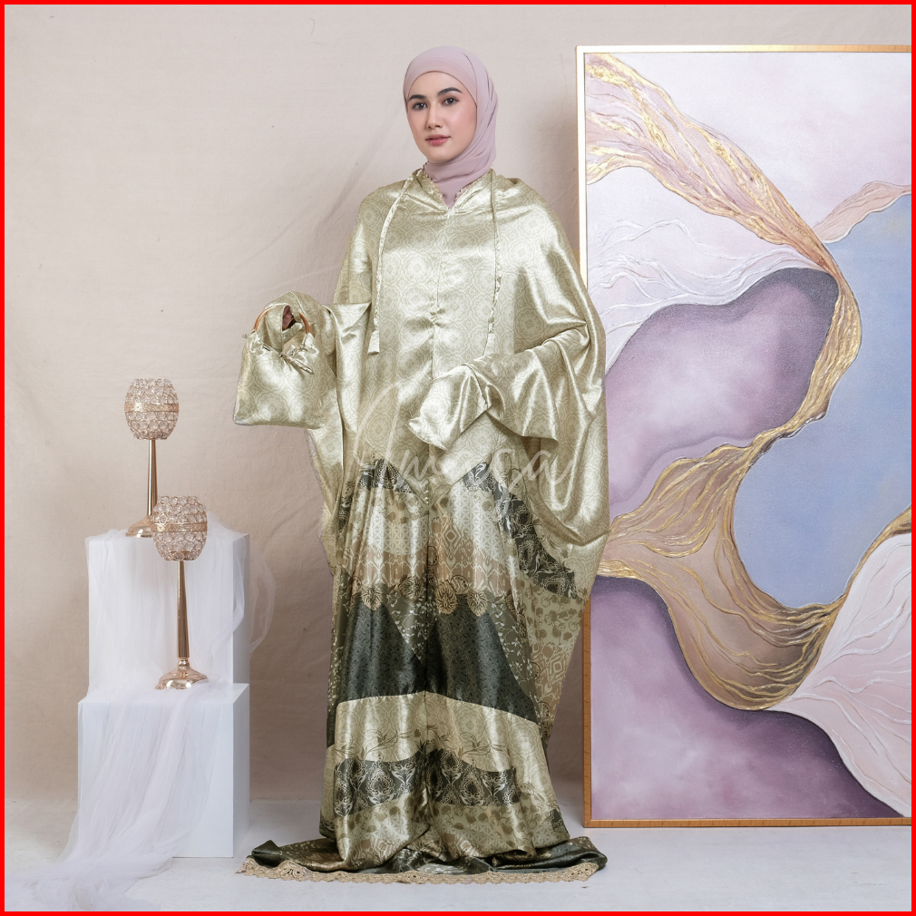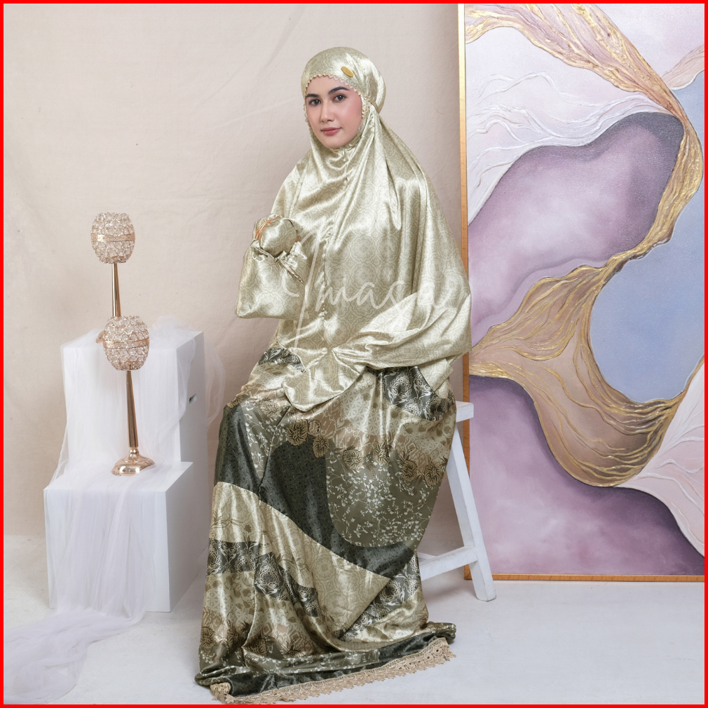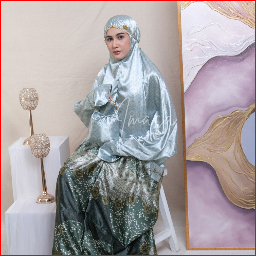 Imasa - Mukena Terusan Dewasa Armani Silk Motif 2 In 1 Renda Mewah