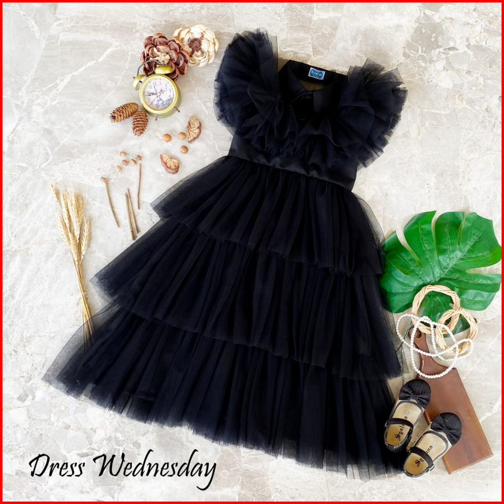 Dress Wednesday Addams Costume Dress Anak Perempuan Dress Party Wednesday Dance Dress Tulle Hitam Kostum Anak