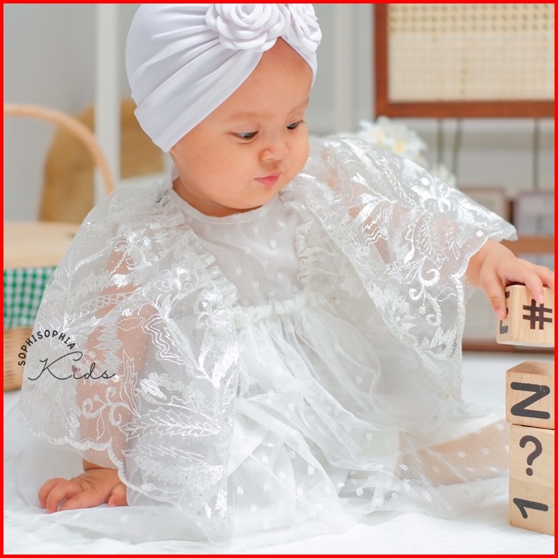 Azalia By Sophisophia. Baju Pesta Anak Perempuan Brokat Putih Gamis Lebaran 2026 Gaun Aqiqah Bayi