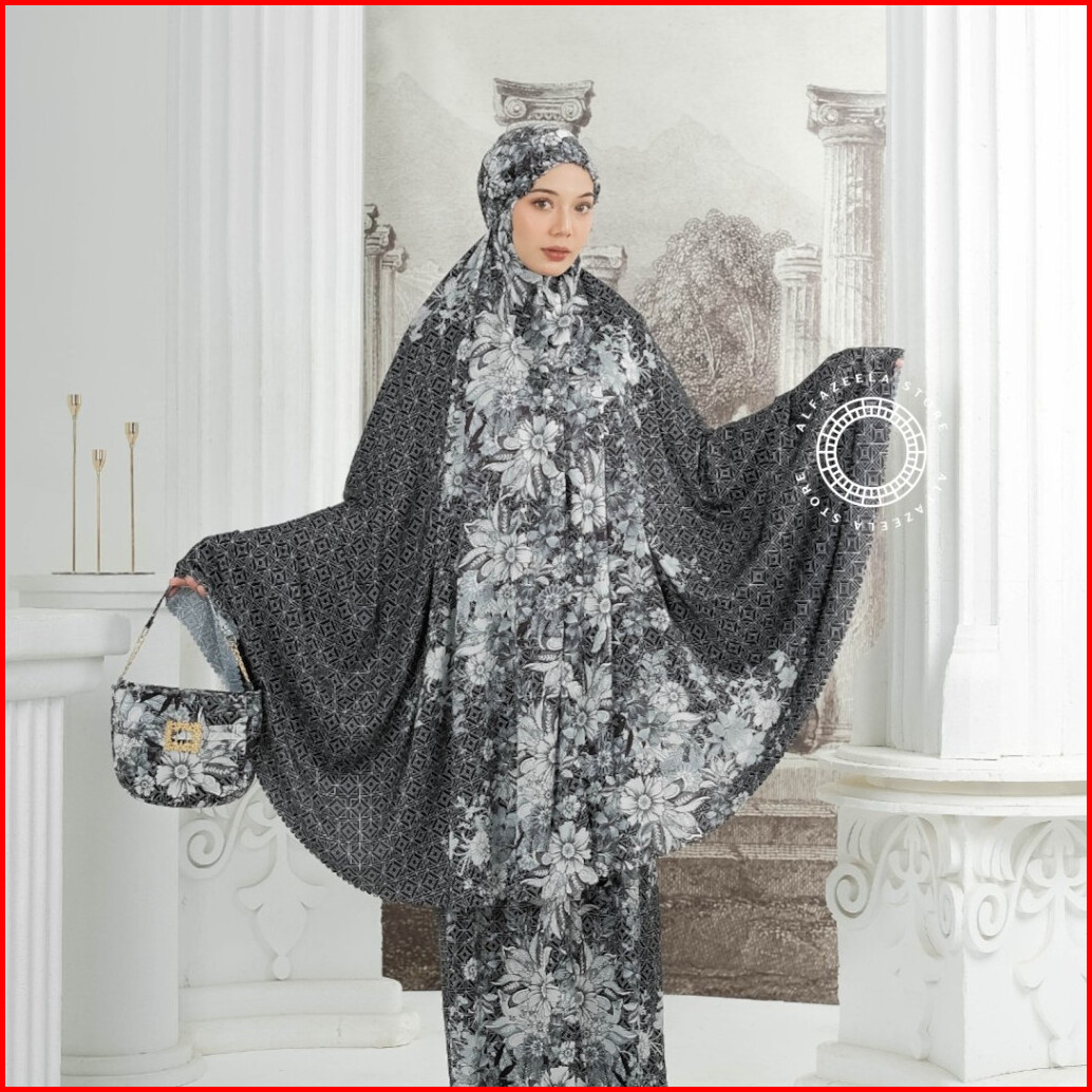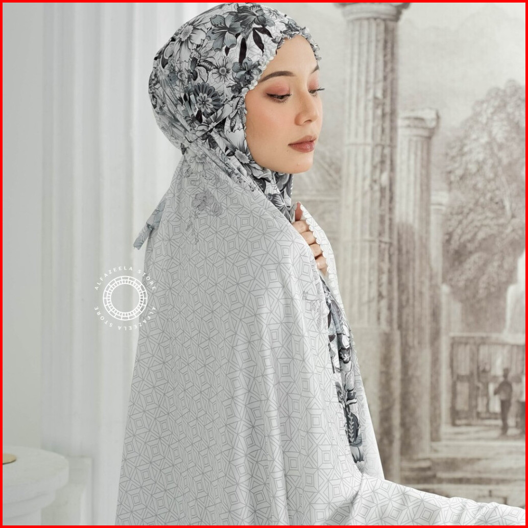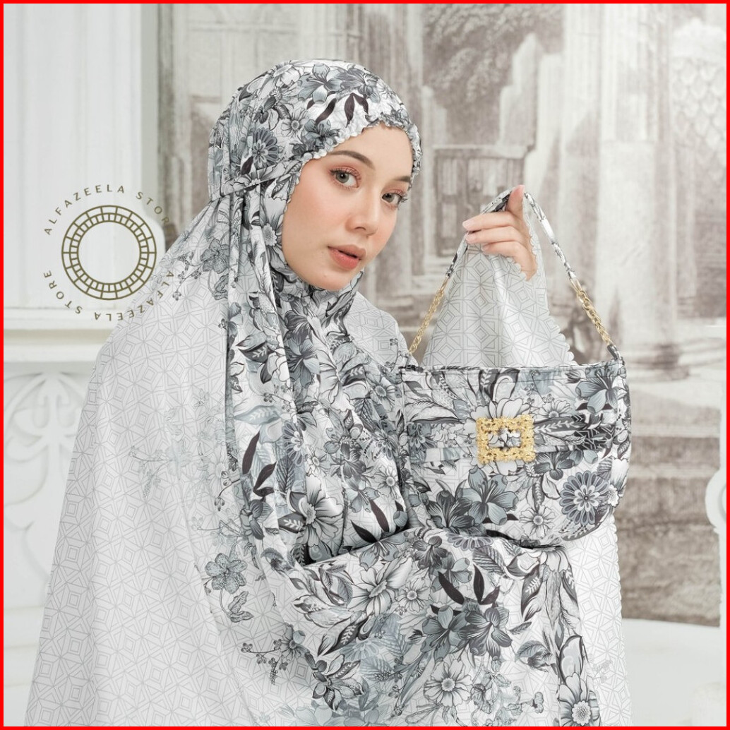 Alfazeela - Havana Series Mukena Dewasa Jumbo Travel 2 In 1 Motif Printing Zipper Resleting Sajadah Mahar Pernikahan Ham