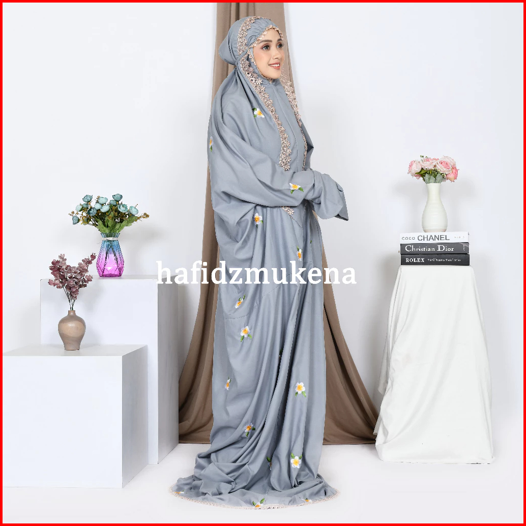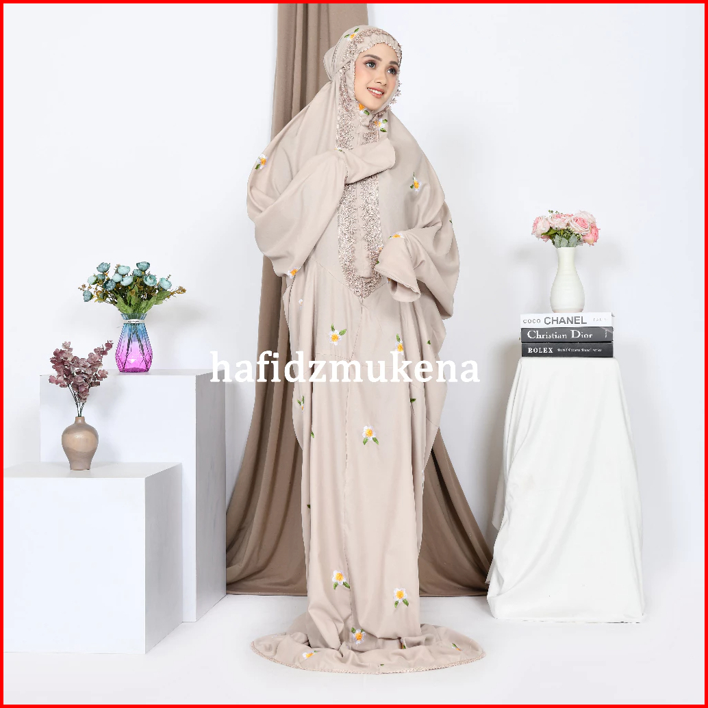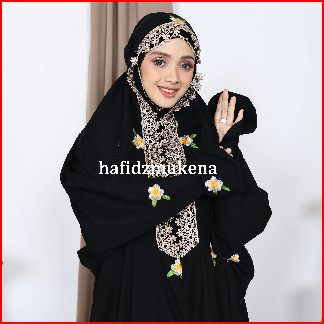 Hafidz - Mukenah Terusan Dewasa Jumbo Katun Bordir Bunga Matahari Mukena Lajuran Langsungan