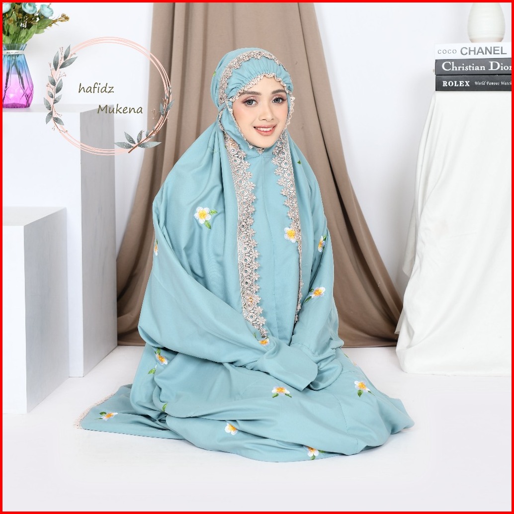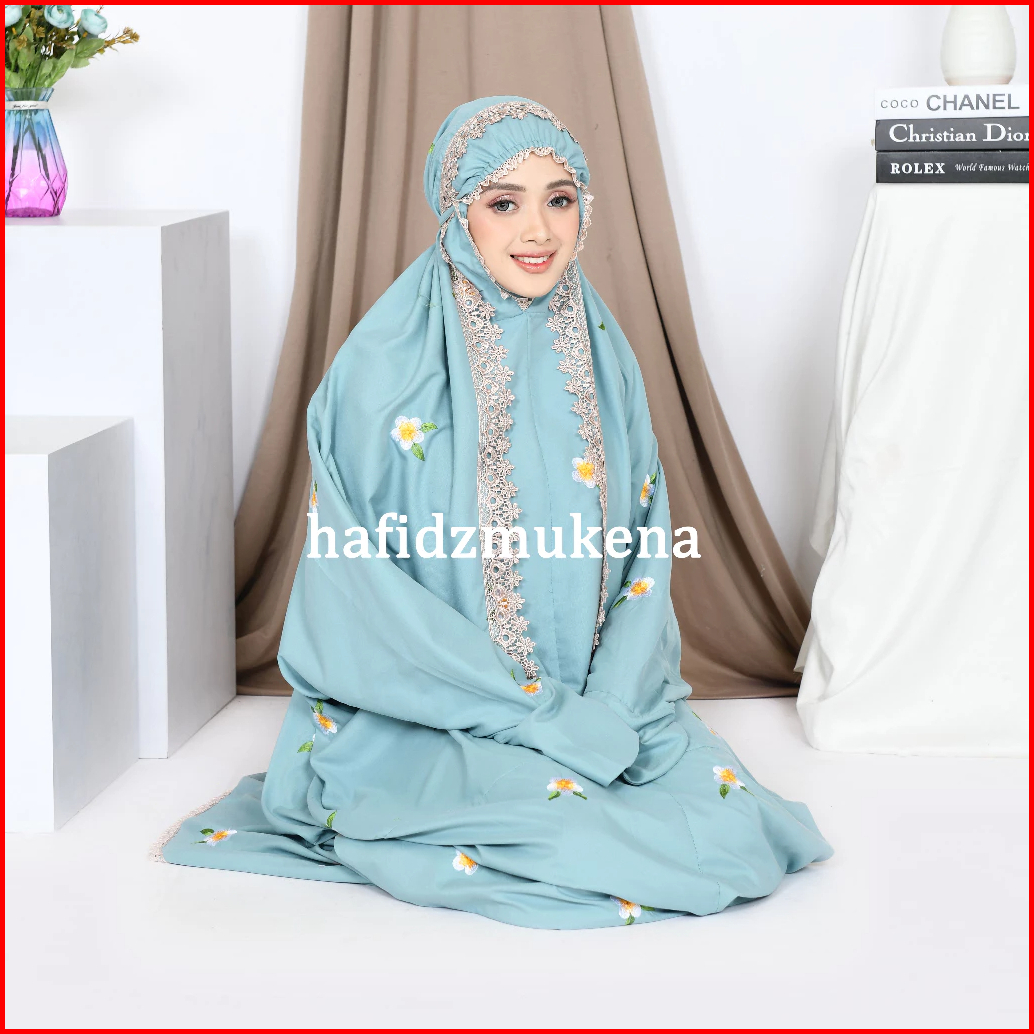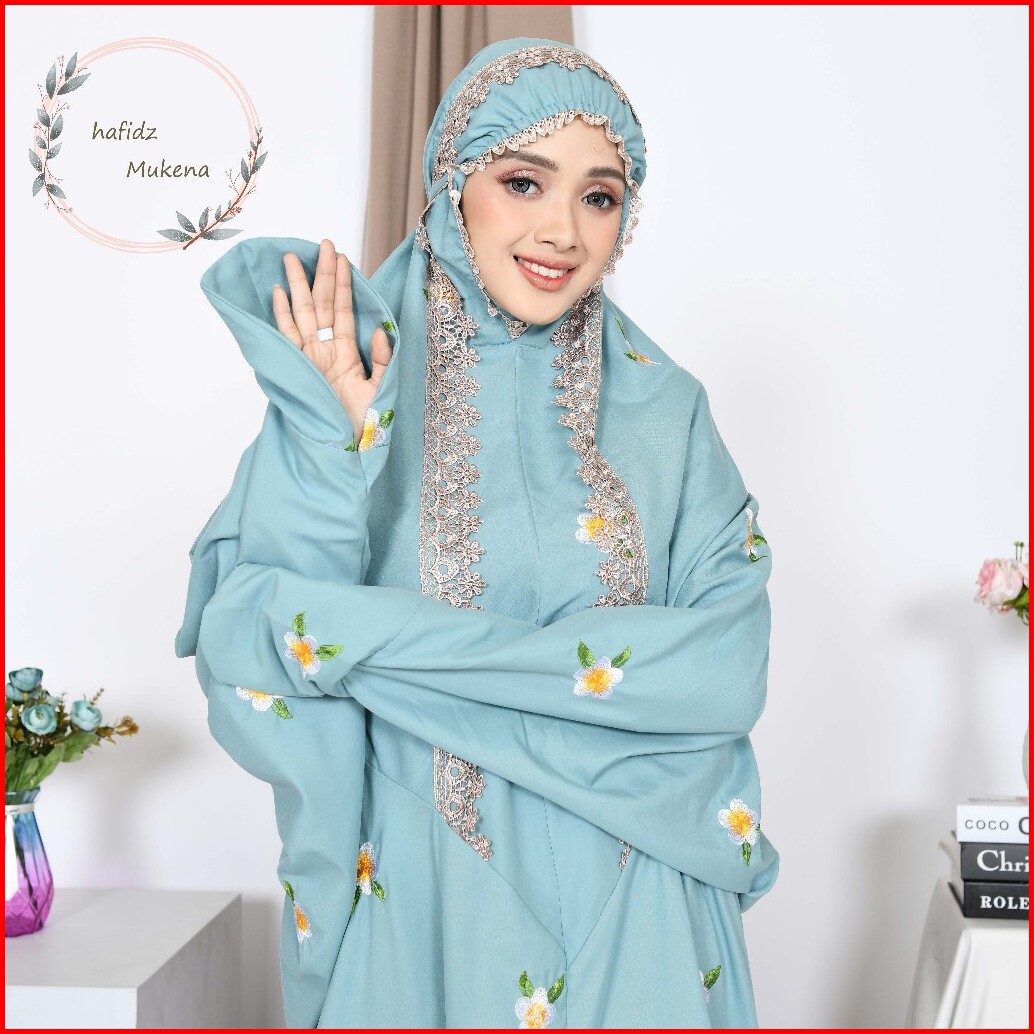 Hafidz - Mukenah Terusan Dewasa Jumbo Katun Bordir Bunga Matahari Mukena Lajuran Langsungan