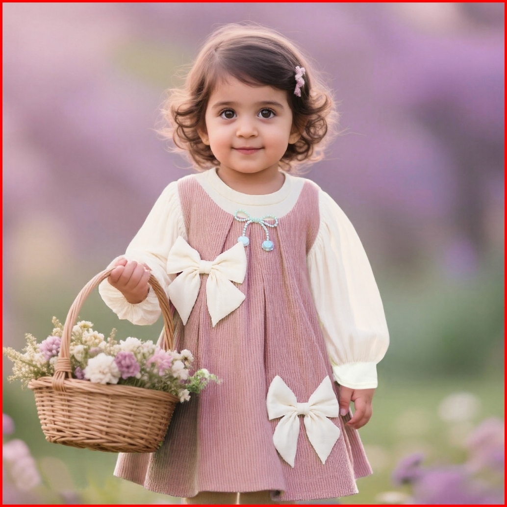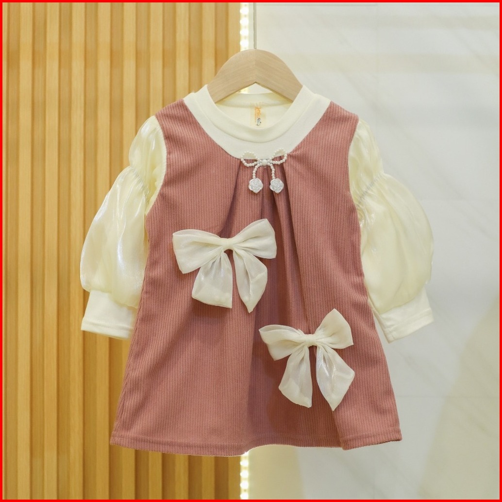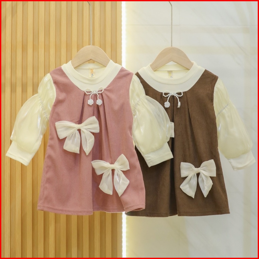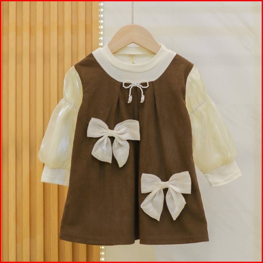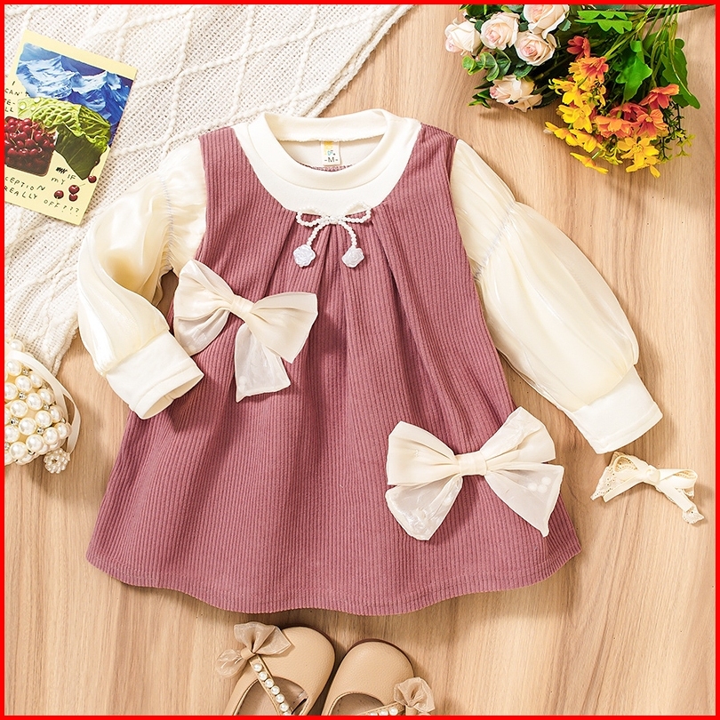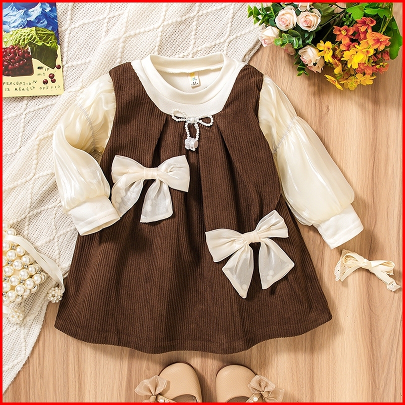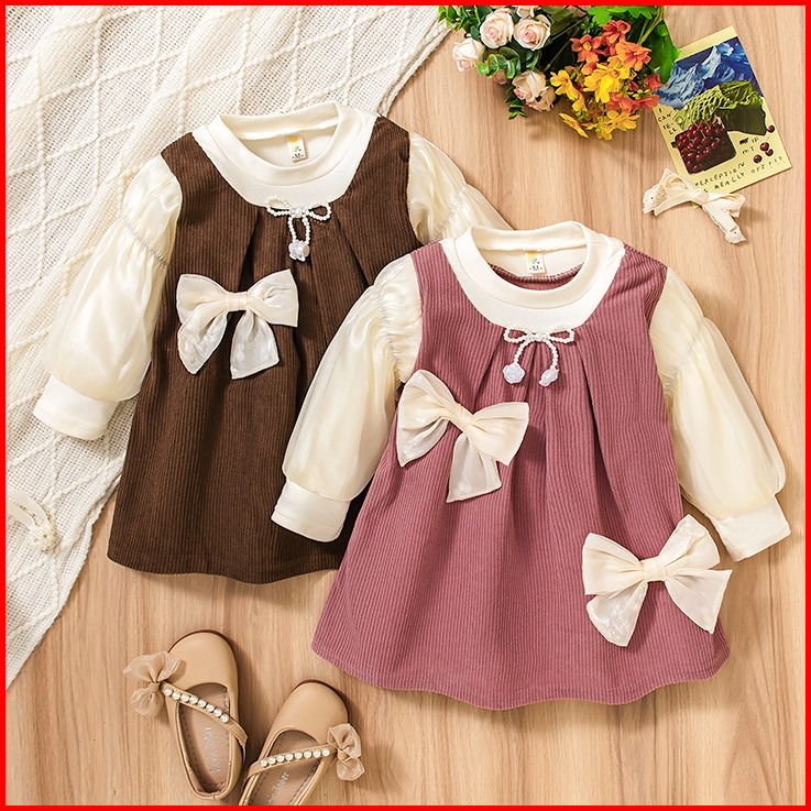 Futurestar Gaun Anak Perempuan Gaya Korea Lengan Panjang Rok Dua Potong Palsu Gaun Kasual Anak