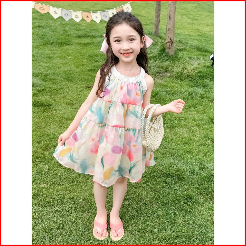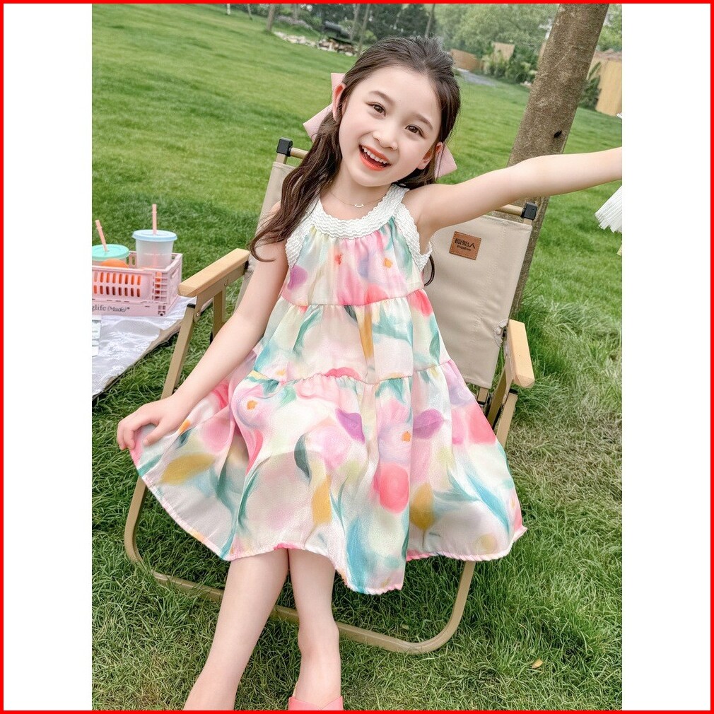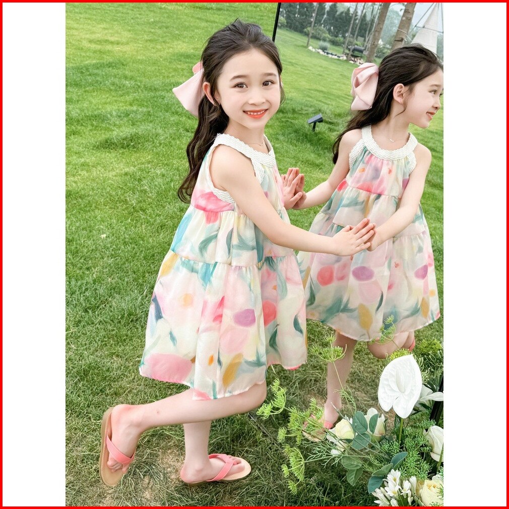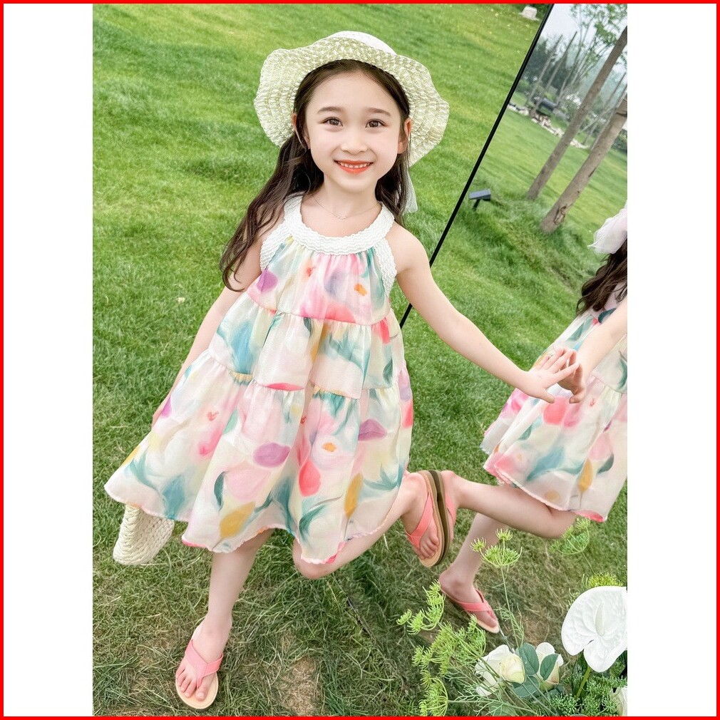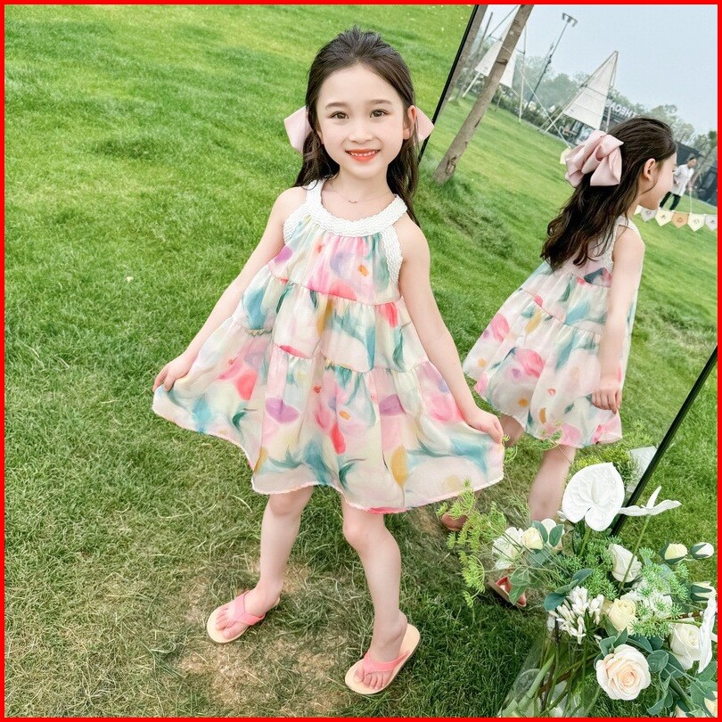 Kd92 Dress Gaun Anak Perempuan Strip Rok Bunga Ombre Layer Fashion Korea Princess